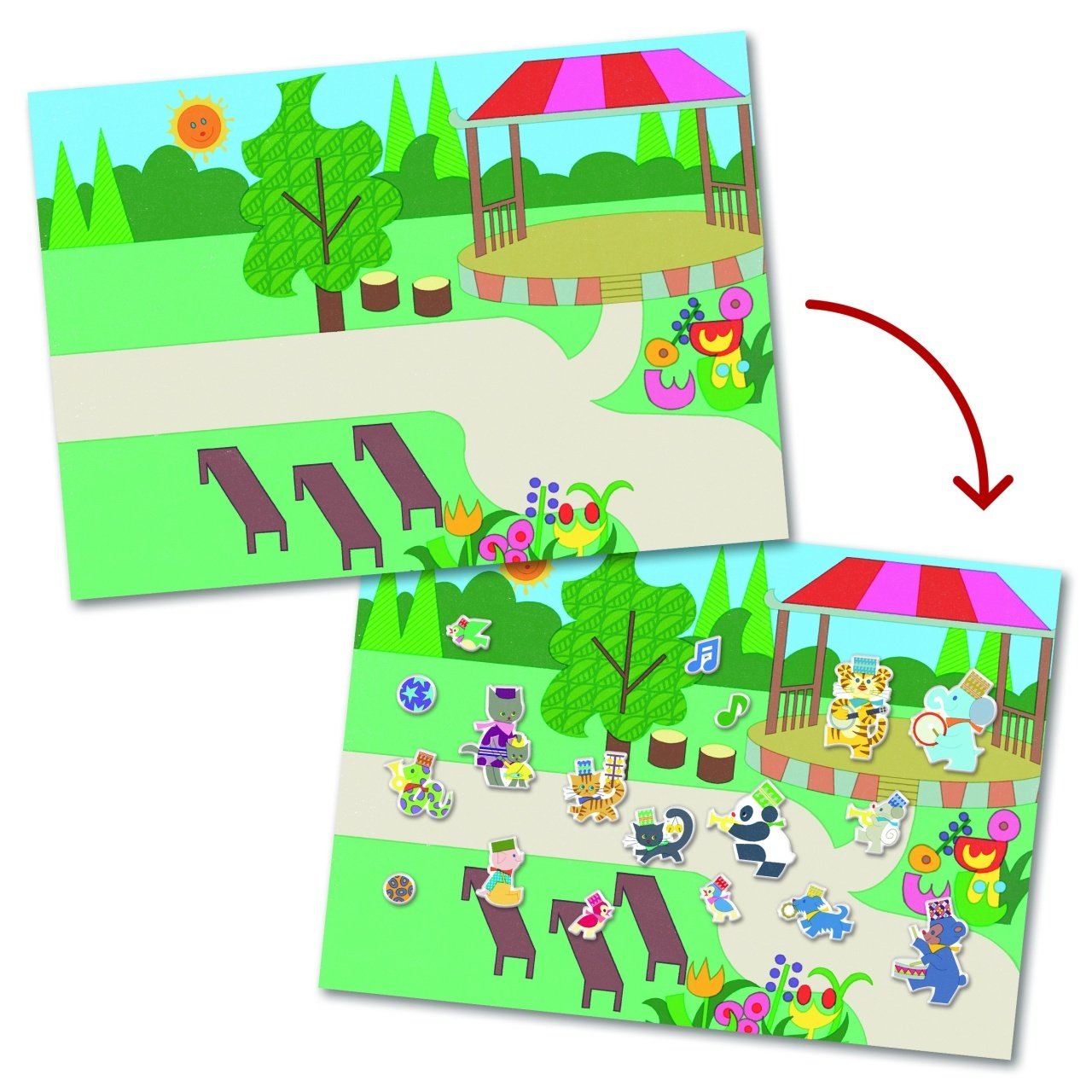 Abtibilduri repozitionabile Parada muzicala – Creează-ți propria paradă cu stickere 3D reutilizabile O activitate creativă plină de culoare și distracție în care copiii își creează propria paradă animată. Stickerele sunt groase și ușor de manevrat de către mâinile mici ale copiilor, fiind recomandate pentru joacă liberă, dezvoltarea imaginației și exprimarea creativității. Parade muzicale, trupe de marș, spectatori entuziaști, tobe, trompete și multe altele – toate într-un set distractiv și reutilizabil. Continut: 2 planșe ilustrate de dimensiuni mari (21 x 29.5 cm) si peste 30 de stickere 3D reutilizabile. Vârsta recomandată: 3 – 6 ani Confecționat din carton și hârtie certificate FSC®. Conform reglementărilor EN71&ASTM. AVERTISMENT: Contraindicat copiilor sub 3 ani. Conține părți mici. Se recomandă supravegherea copilului de către un adult în timpul jocului. Citiți cu atenție eticheta produsului înainte de a înmâna jucăria copilului. Producător: Djeco, Franța