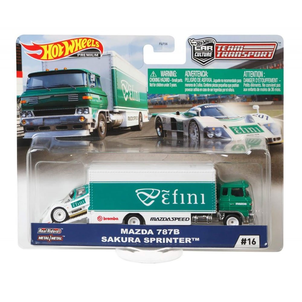 Detalii Camion Hot Wheels by Mattel Car Culture Sakura Sprinter cu masina Mazda 787B