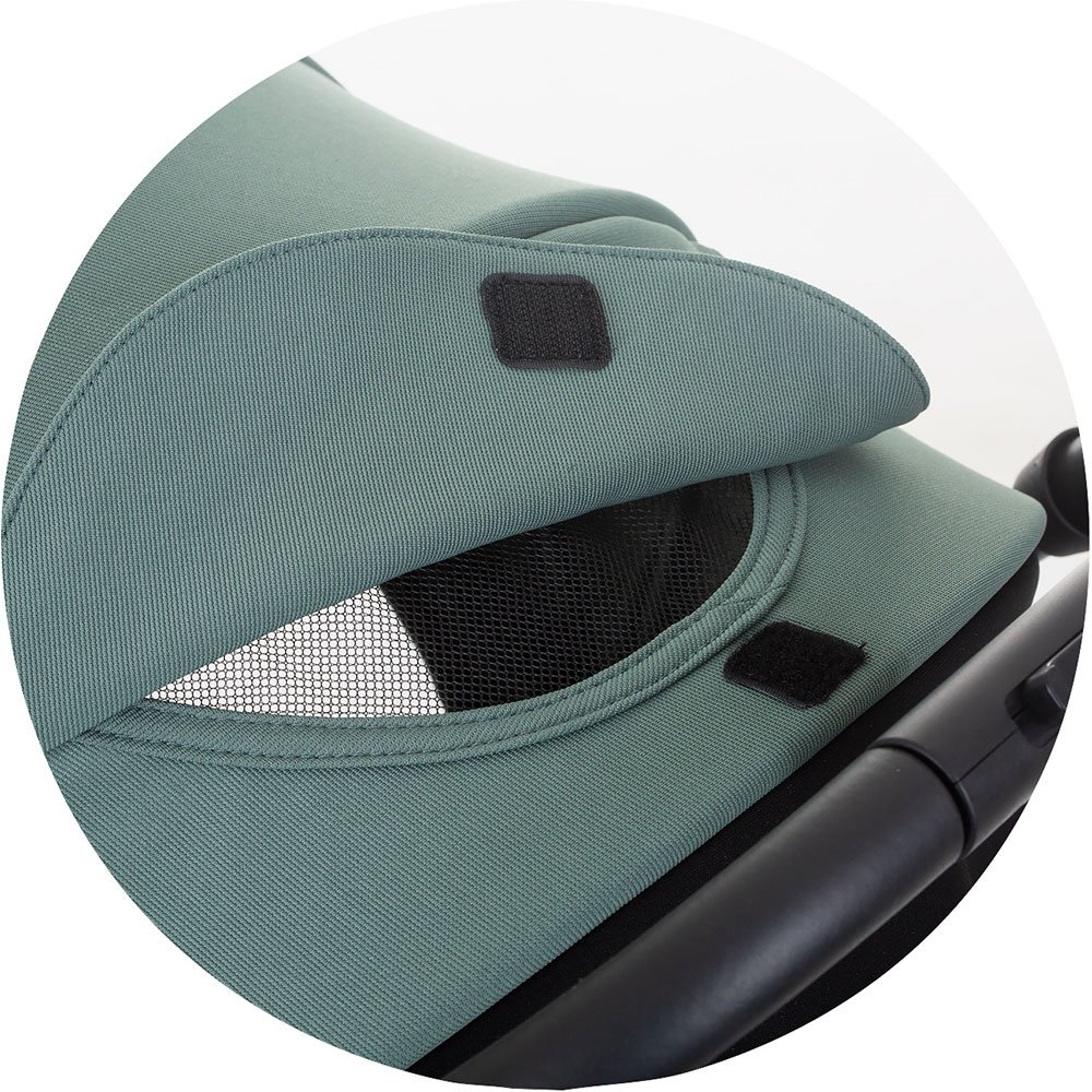 - Copertina generoasa si reglabila, dotata cu vizor si realizata din material impermeabil