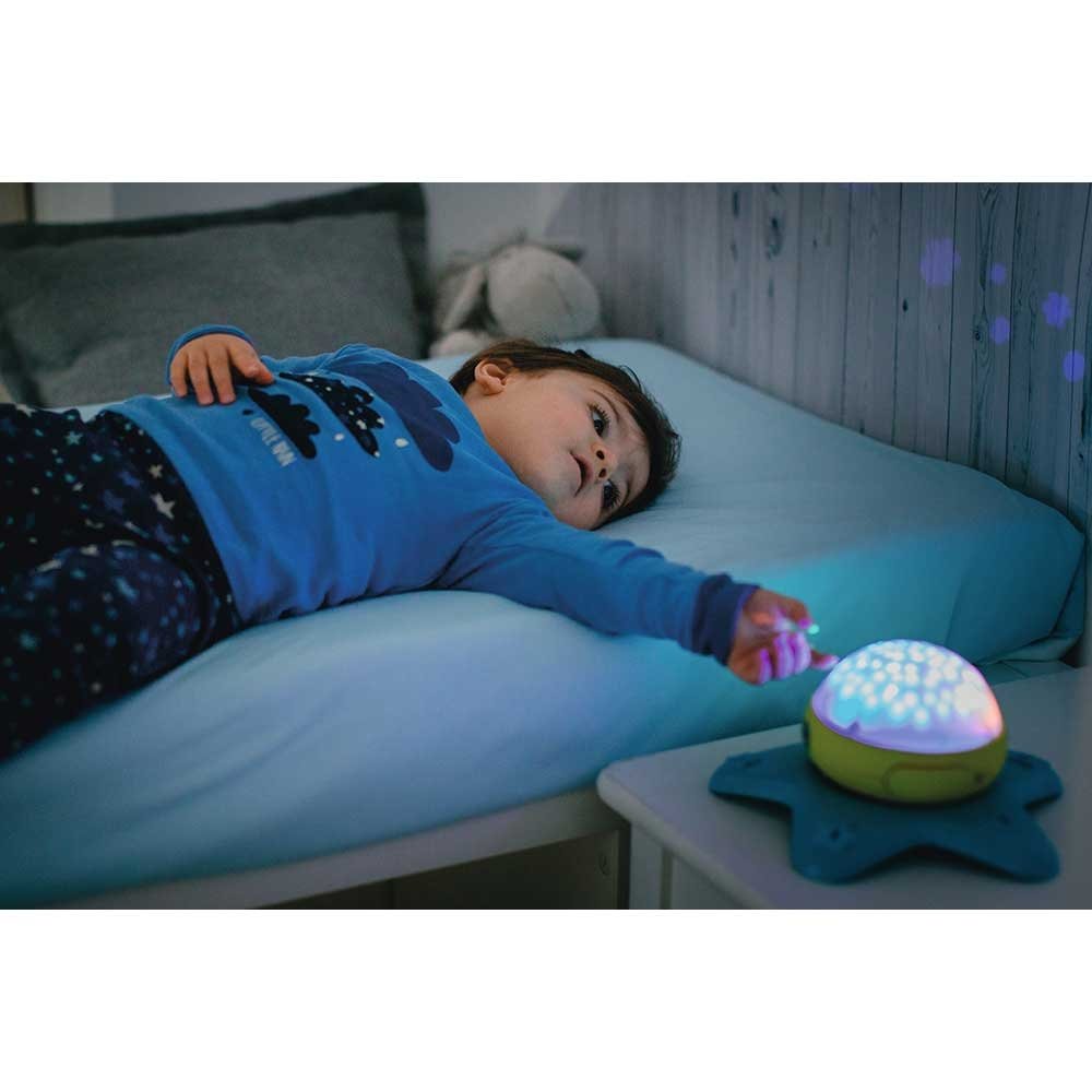 - Dupa apasarea butonului floarea lumineaza intr-o culoare placuta in intuneric, care va reflecta flori si stele pe peretii camerei timp in care se schimba culorile