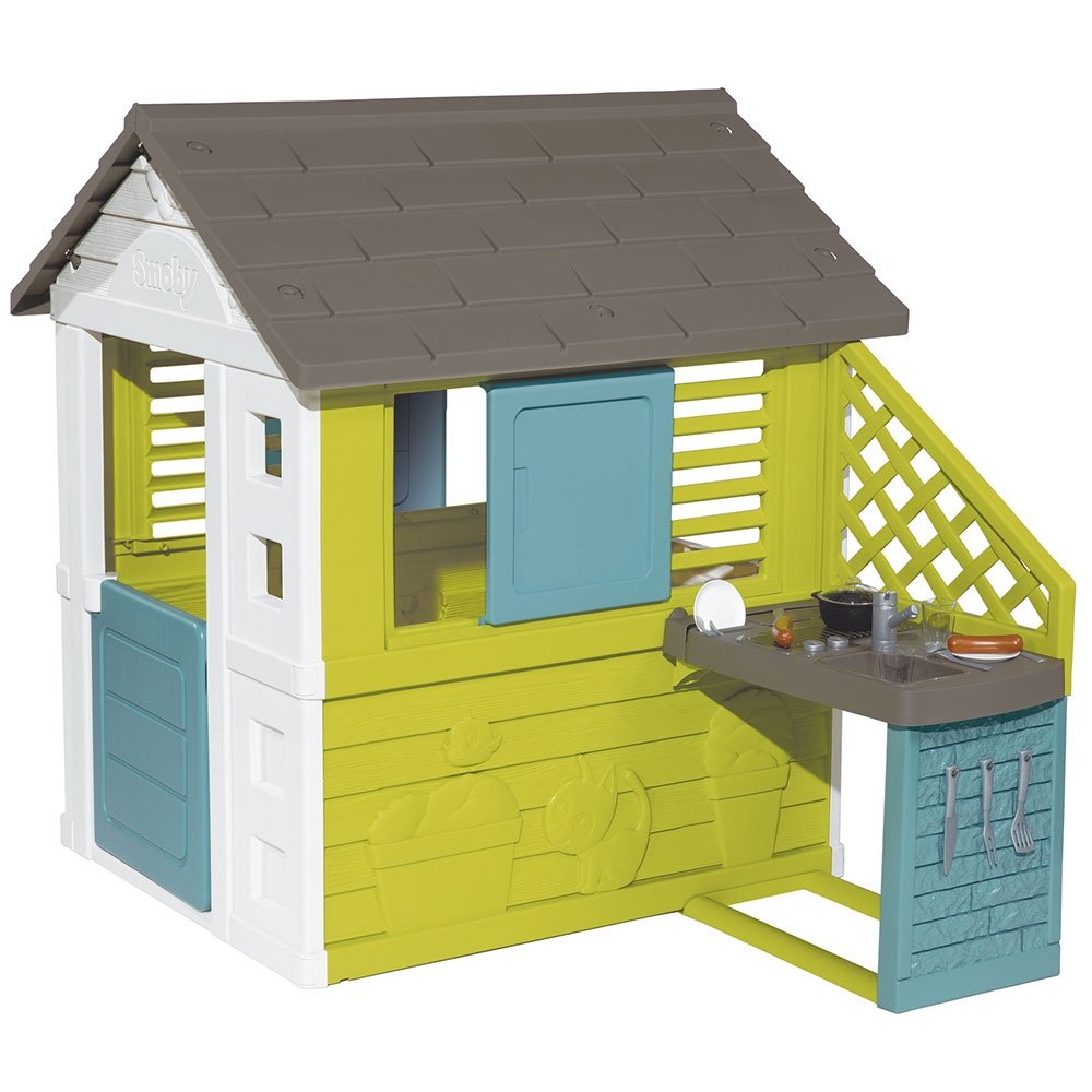 - Casuta pentru copii Smoby Pretty cu bucatarie este un set compus din casuta Pretty si bucatarie de vara, plus alte accesorii pentru bucatarie