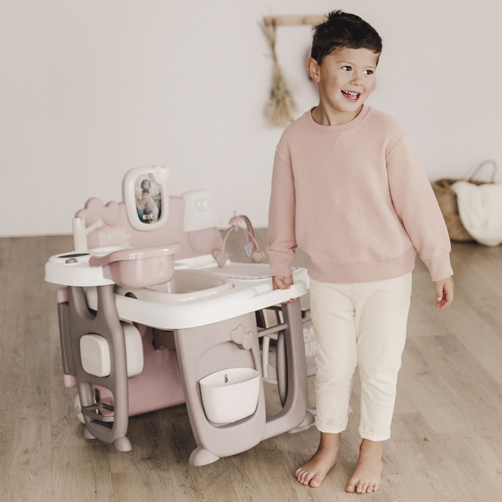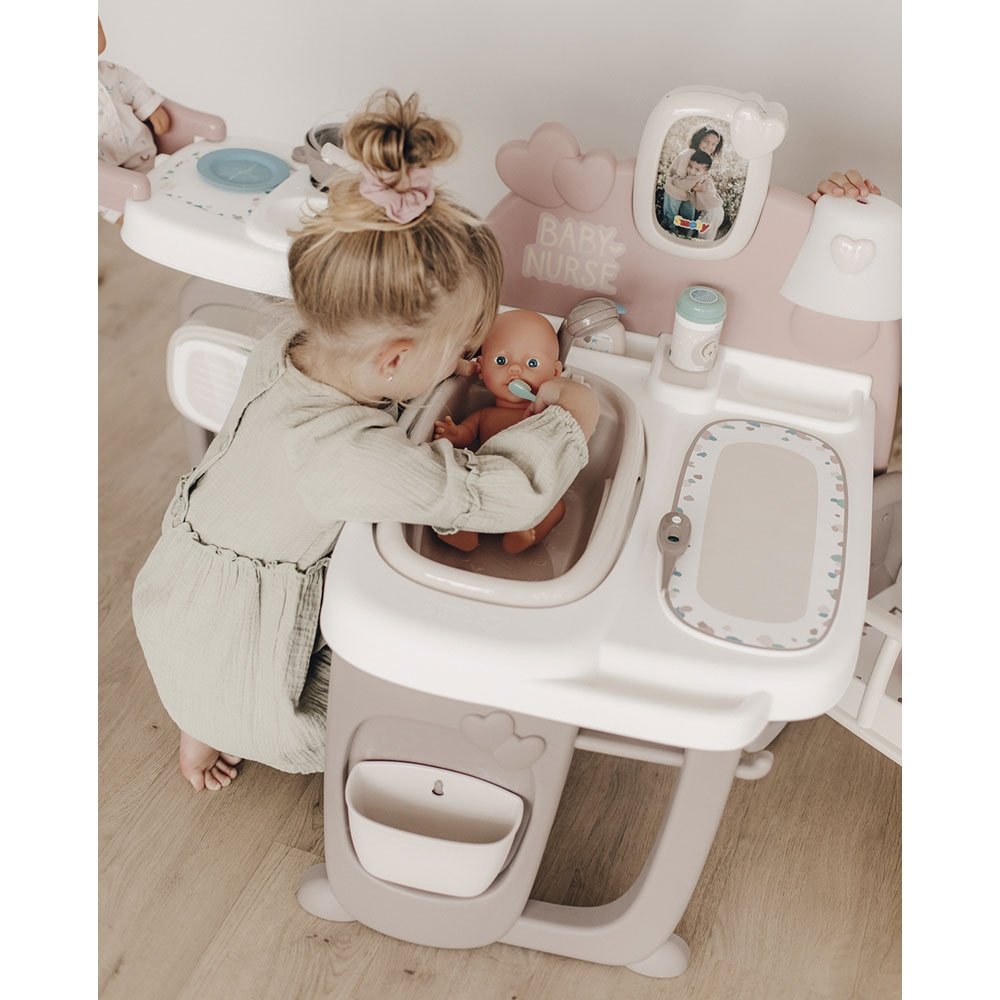 - Centrul pentru papusa Smoby Baby Nurse Doll’s Play Center este o jucarie rezistenta multifunctionala care le ofera micilor bone diferite posibilitati de joaca