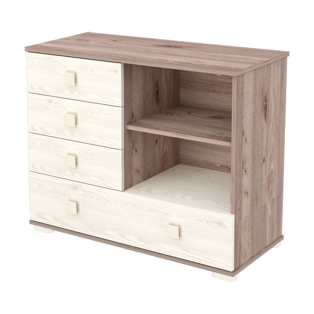 - Este un model multifunctional: in cazul in care nu e folosit pentru infasarea bebelusului, poate functiona ca o comoda normala in camera copilului sau in orice alta parte a casei, doar prin indepartarea blatului pentru infasat