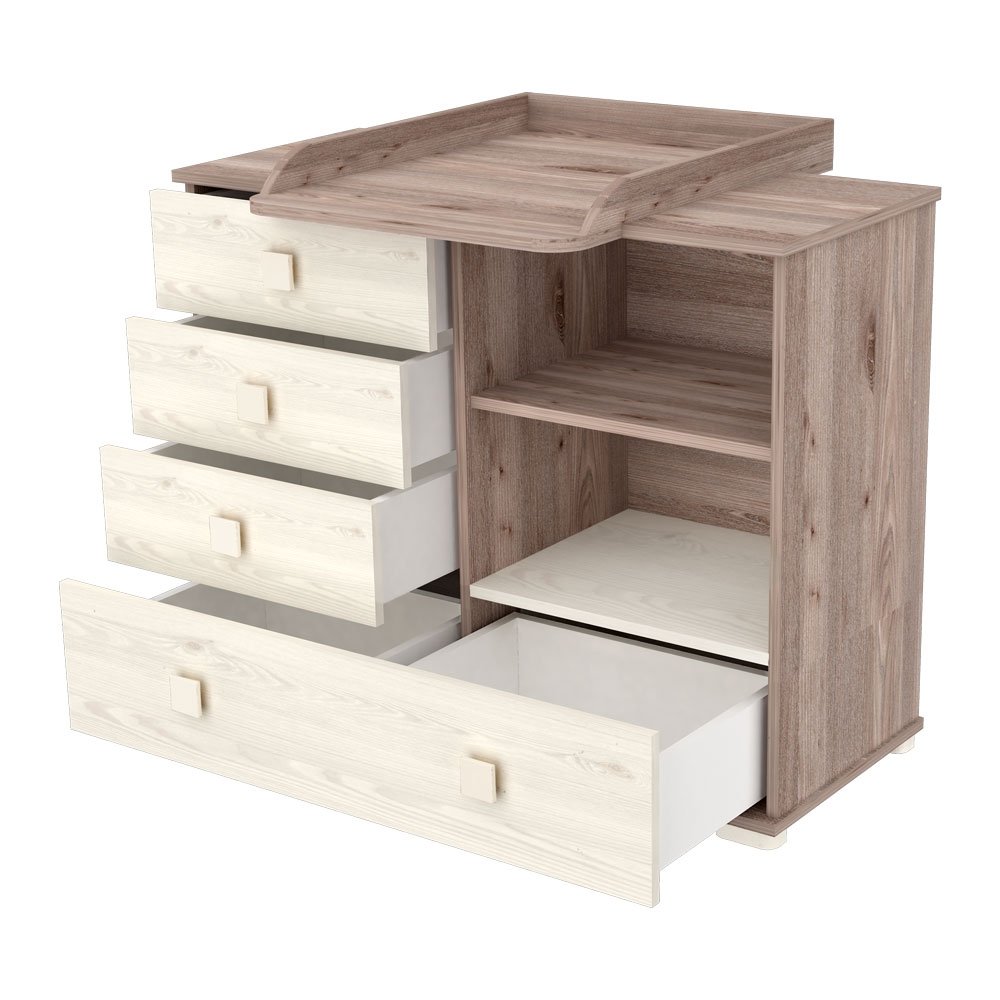 - Latimea produsului precum si faptul ca blatul pentru infasat poate fi glisat, permit ca infasarea bebelusui sa fie mai usoara si mai confortabila