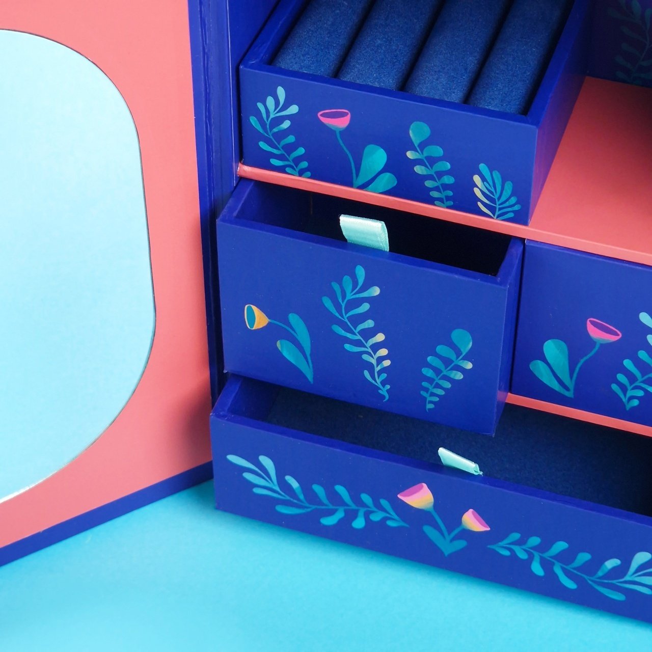 Cutie muzicala pentru bijuterii Fetita si dragonul Cutie de bijuterii sub forma unei cărți fantastice, decorată cu motive fantastice. Această bijuterie muzicală dispune de sertărașe multiple, suport de inele și o oglindă, pentru momente de răsfăț și joc de rol. Cu un design compact, dar încăpător, și detalii bine gândite precum sertare diferite pentru cercei, brățări și coliere, această cutie nu este doar funcțională, ci mai ales decorativă.Cadou pentru fete cochete care îndrăgesc poveștile, magia și bijuteriile. Melodie: Puff the Magic Dragon Dimensiune cutie muzicală: 20.5 × 15.5 × 8 cm Vârsta recomandată: +4 ani. C onfecționată din MDF, carton ilustrat, plastic (oglindă), componente metalice. AVERTISMENT: Articol decorativ. Nu este jucărie. A nu se lăsa la îndemâna copiilor sub 3 ani. Producător: Svoora