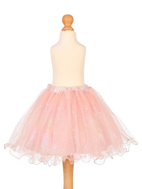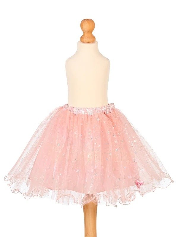 Fustiță Alessandra Souza! este un tutu din tul roz pal cu mai multe straturi suprapuse, decorat cu stele sclipitoare argintii presărate uniform pe toată suprafața. Talia este elastică, finisată cu o bandă satinată roz, care asigură o prindere confortabilă și reglabilă pe măsură ce copilul crește. La tiv, un mic patch în formă de inimă cu logo Souza! completează designul.