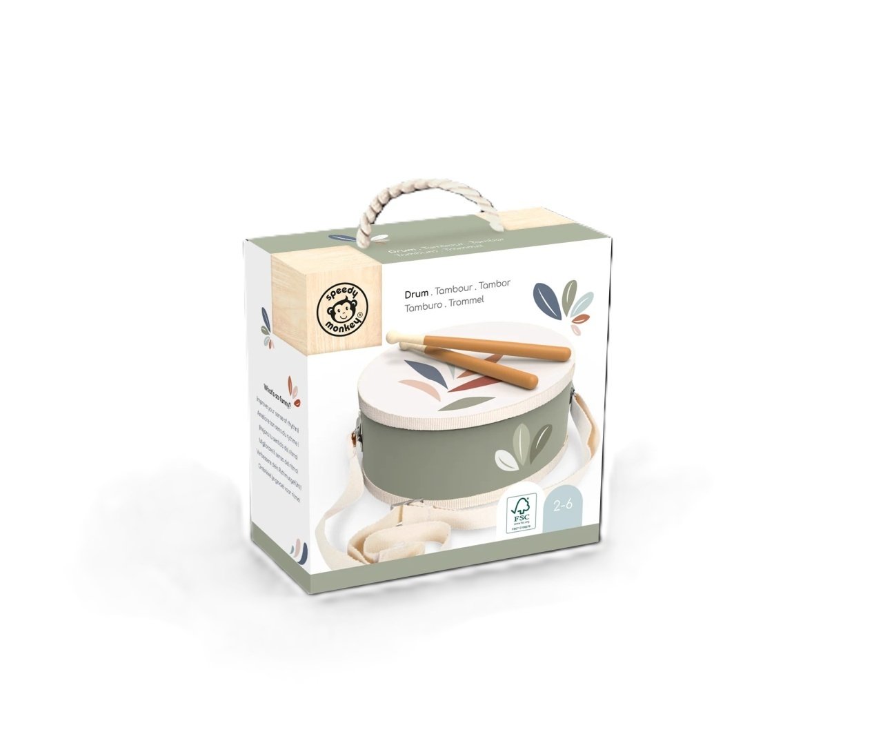 Instrument muzical Toba din lemn Lasă ritmul să prindă viață și oferă copilului tău ore întregi de distracție muzicală cu acesta toba din lemn, conceputa pentru micii artiști începători. Construirea robustă face față celor mai entuziaste bătăi, iar materialele durabile îi conferă rezistență și atractivitate sporită. Dezvoltă abilități senzoriale, coordonarea mână-ochi și ritmul în joacă. Este creata din materiale sustenabile, ecologice, și îi încurajează pe copii să experimenteze muzica într-un mod creativ și liber. Ambalată într-o cutie frumoasă cu mâner, potrivită pentru cadou. Dimensiuni: 18.4 x 8.1 x 18.4 cm. Vârsta recomandată: +2 ani. Fabricată din lemn provenit în mod durabil din păduri certificate FSC®. AVERTISMENT: Contraindicat copiilor sub 2 ani. A se folosi sub atenta supraveghere a unui adult. Producător: Speedy Monkey