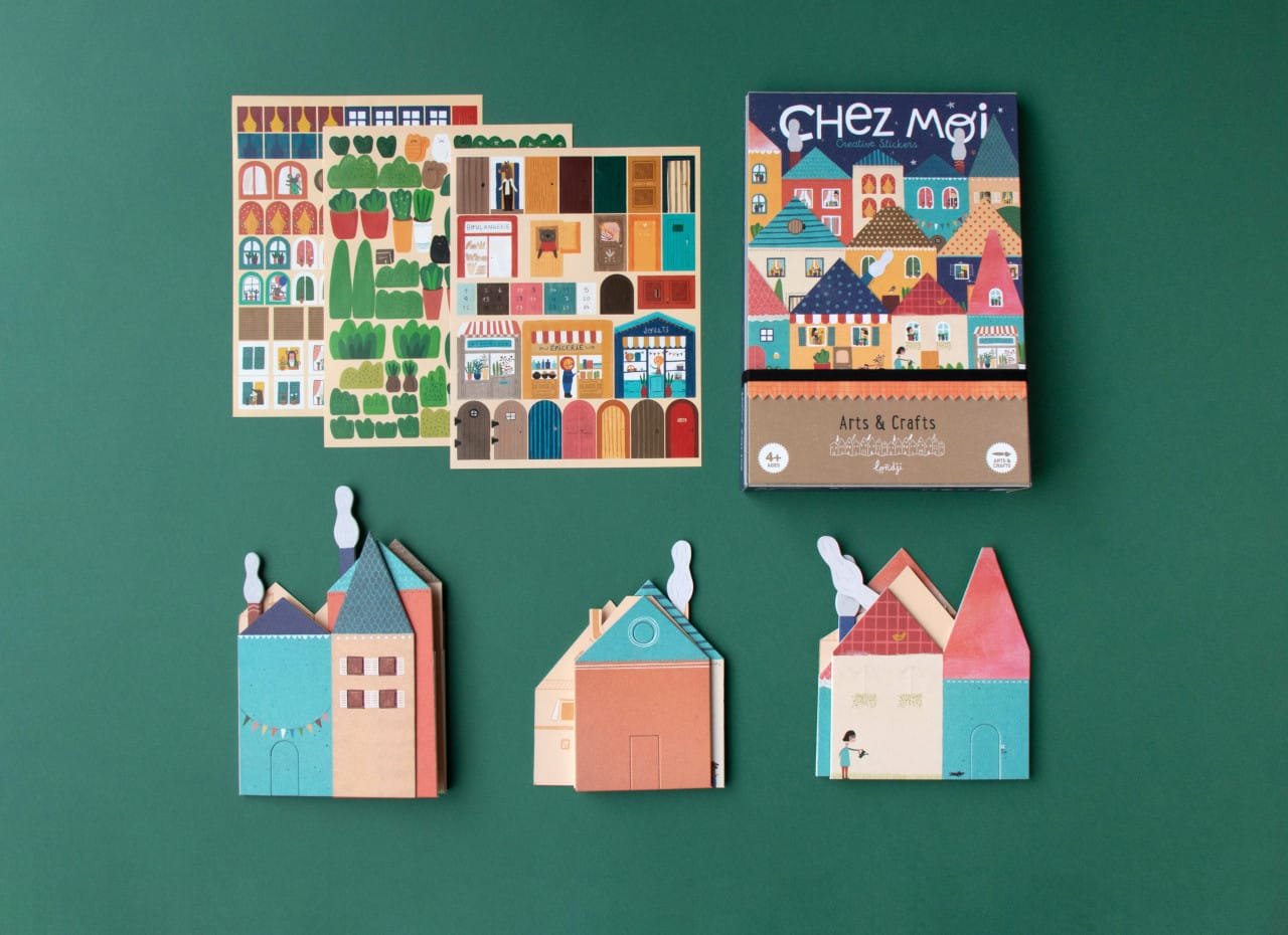 Joc creativ Casuța mea Bine ați venit în casa mea! Creează-ți propriile case cu autocolante și începe să te joci. Setul conține 3 cartonașe cu case pliabile (66 x 15 cm) și 185 de autocolante detașabile pentru decorat casele. Vârsta recomandată: +4 ani. Confecționat din carton reciclabil. Conform reglementărilor EN71 & ASTM. Hârtie FSC și carton reciclat. Avertisment: Contraindicat copiilor sub 3 ani. Conține fir lung, pericol de ștrangulare. A se utiliza sub stricta supraveghere a unei persoane adulte. Produs în Spania de Londji.