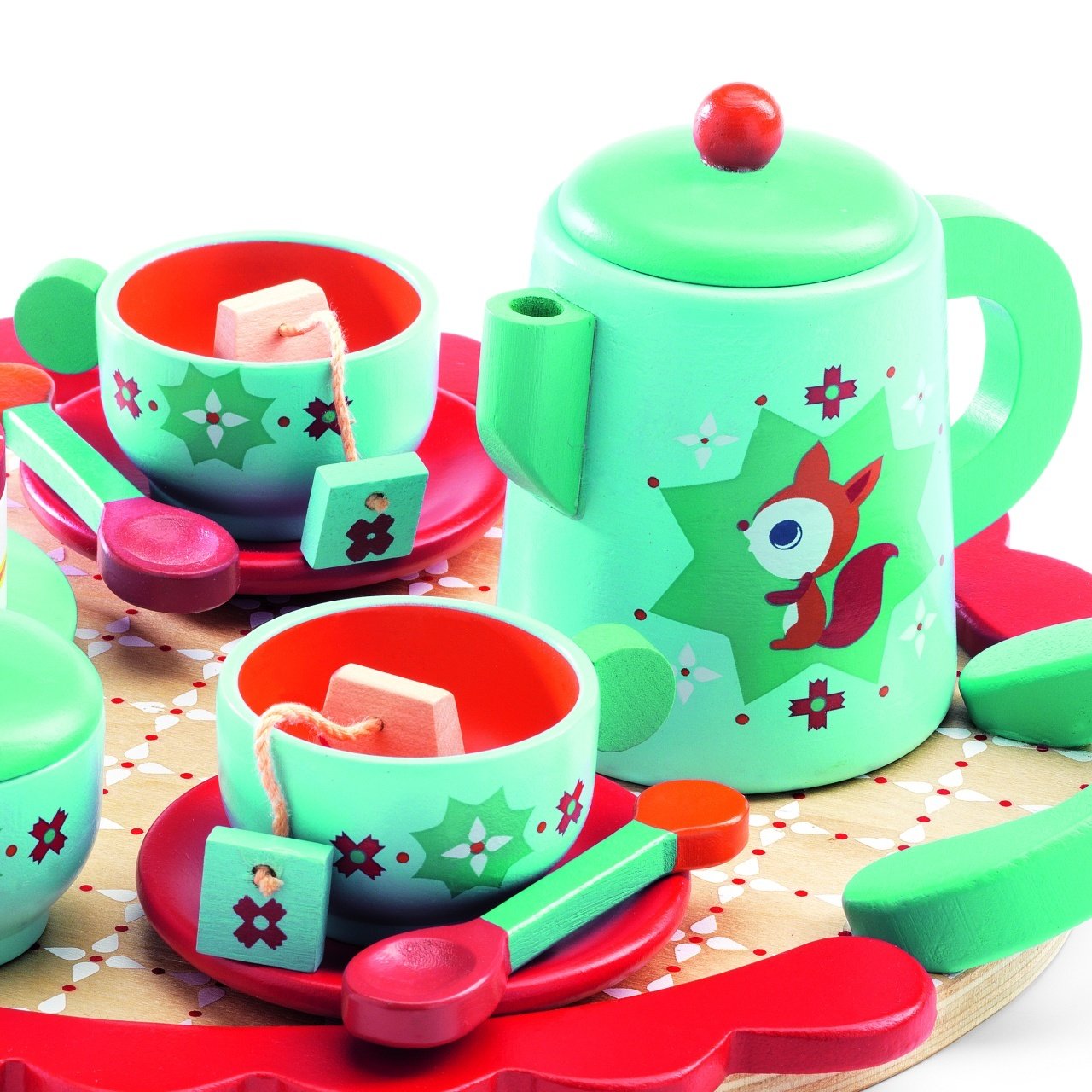 Set aniversar turcoaz O felie de tort și un ceai aromat sunt deliciul oricui. Fetița ta va fi nerăbdătoare să te servească cu delicatesele preparate de ea. Setul conține: tort, ceșcuțe si farfurioare, ceainic și zaharniță, tăvița, toate din lemn. Confecționat din lemn certificat FSC®. Vârsta recomandată: +4 ani. AVERTISMENT! Contraindicat copiilor sub 3 ani. A se folosi sub directa supraveghere a unei persoane adulte. Producător: Djeco , Franța.