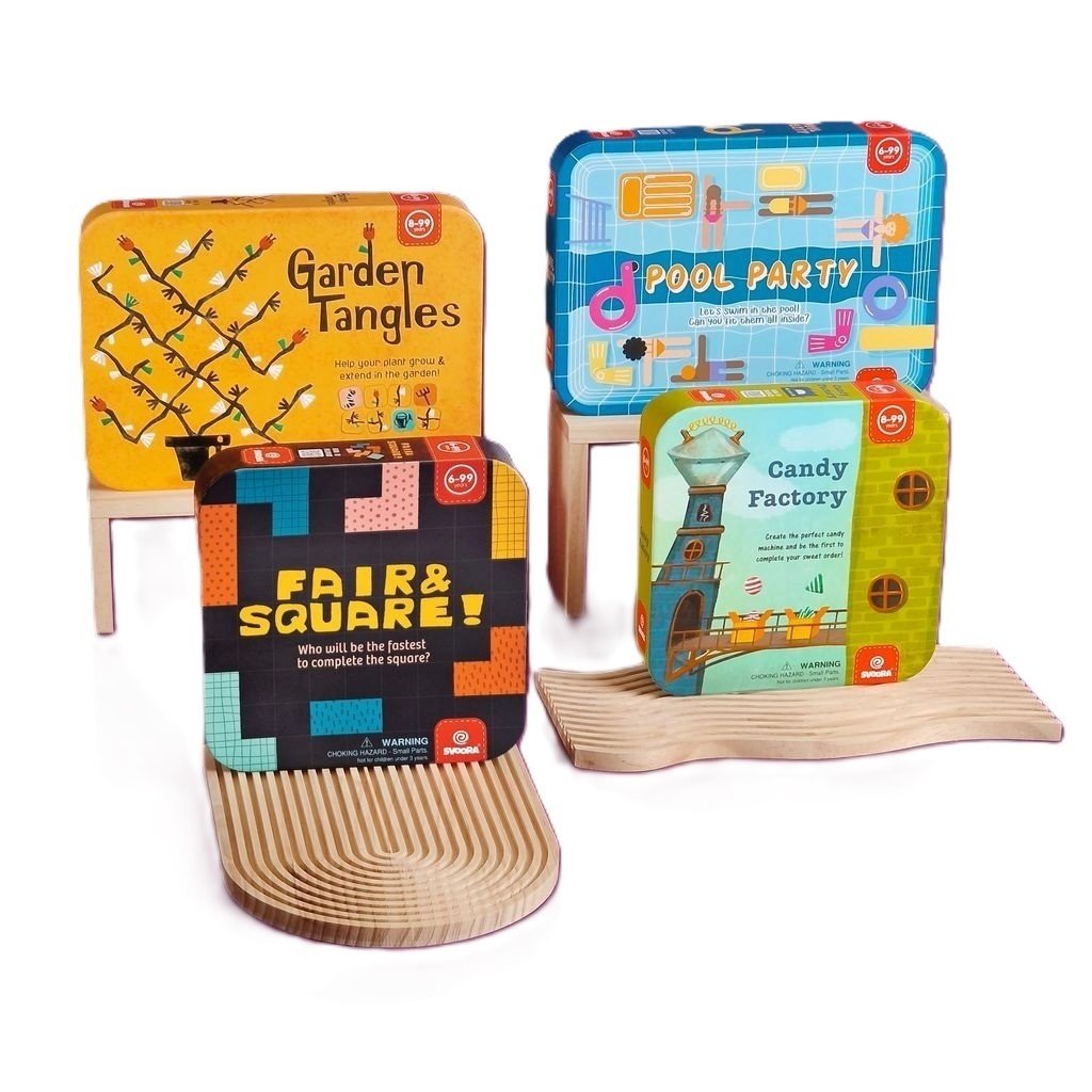 Joc de strategie Fabrica de bomboane Joc magnetic de strategie captivant, conceput pentru 2 jucători, care provoacă participanții să își testeze abilitățile de logică și planificare. Fiecare jucător trebuie să plaseze piesele magnetice pe tablă, respectând reguli specifice, pentru a umple complet spațiul fără a lăsa goluri. Conținut : 24 de piese magnetice, tablă de joc si Instrucțiuni în mai multe limbi. Dimensiune : 25 × 18 × 4.5 cm Vârsta recomandată: +6 ani. C onfecționat: piese magnetice din plastic, tablă de joc din carton. Conform standardelor EN71 și ASTM; nu este recomandat copiilor sub 3 ani din cauza pieselor mici AVERTISMENT: Contraindicat copiilor sub 3 ani. Producător: Svoora