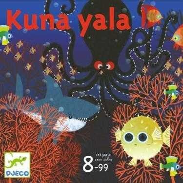 Joc de strategie Kunayala Un joc tactic în care trebuie să aduni pești și caracatițe. Din fericire chiar și rechinii îți aduc puncte în acest joc, dacă sunt poziționați în bancul tău de pești, completat strategic pe parcursul jocului. Vârsta recomandată: 8-99 ani. Confecționat din carton. Conform reglementărilor EN71&ASTM. AVERTISMENT! Contraindicat copiilor sub 3 ani. A se folosi sub directa supraveghere a unei persoane adulte. Producător: Djeco, Franța Kuna yala -descarca aici regulile jocului