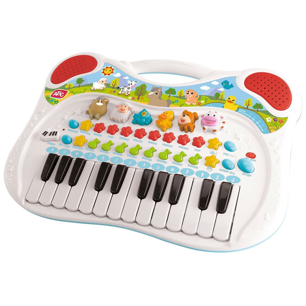 - Orga cu animale ABC pentru micii muzicieni de la varsta de trei ani are butoane colorate si un autocolant mare cu motive dragute de animale