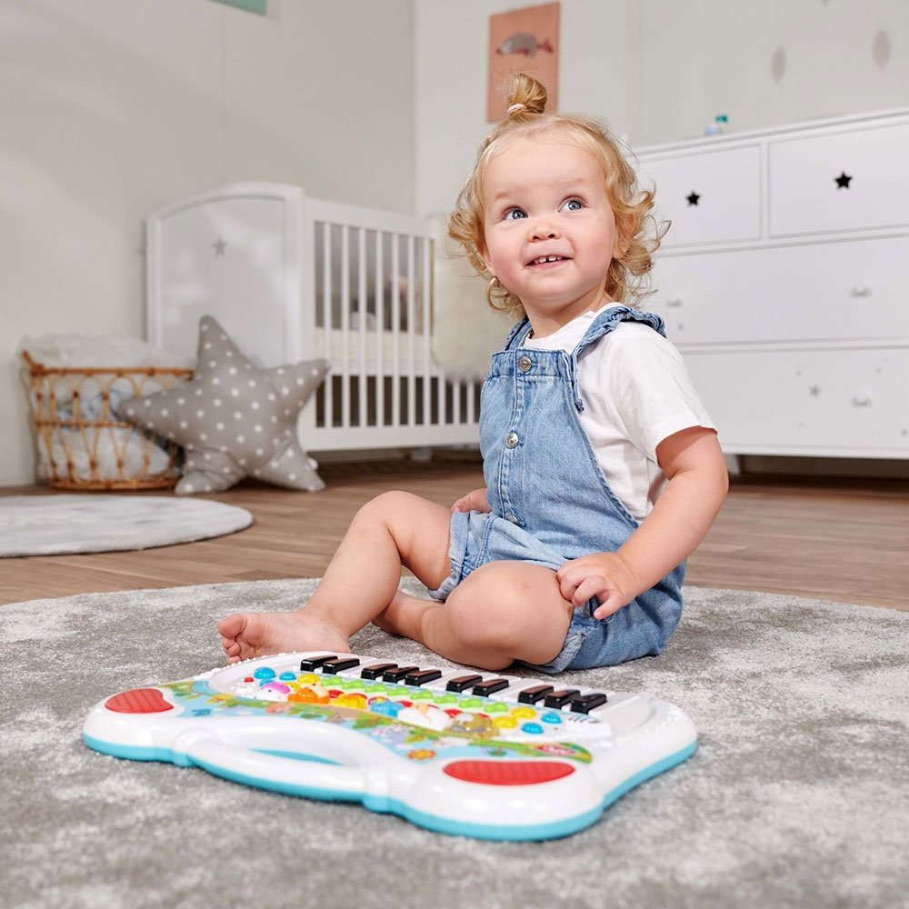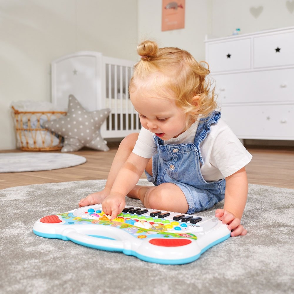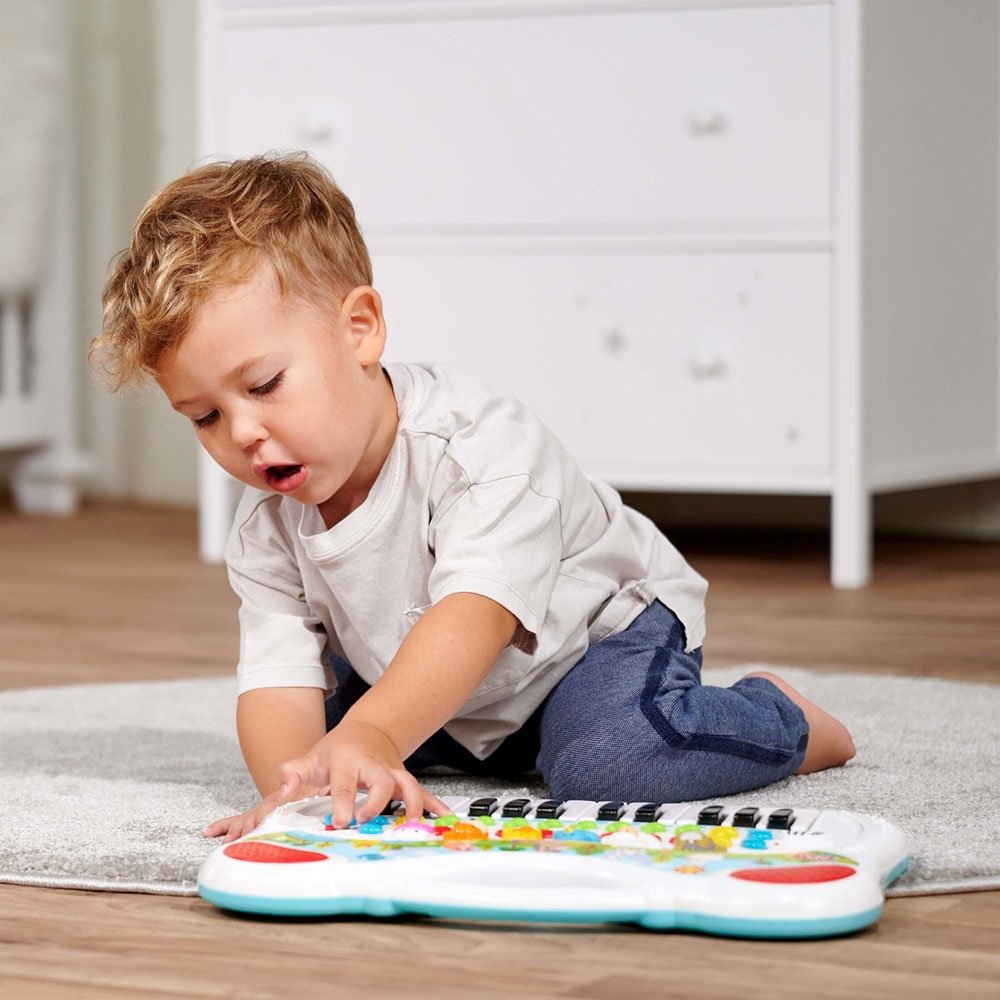 - Pe langa sunetele de animale, tastatura pentru copii are numeroase alte functii. Puteti reda sunete si melodii diferite, puteti schimba ritmul sau puteti inregistra melodii si le puteti reda