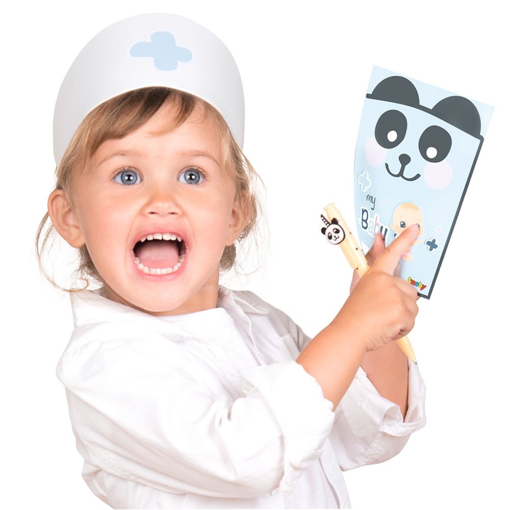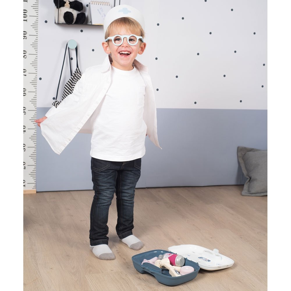 - O multime de accesorii sunt incluse pentru a-si indeplini cu succes misiunea: eticheta autoadeziva, ochelari de doctor, fisa pacient, stetoscop, termometru, otoscop, ciocan reflex, sirop, lingura si seringa cu actiune mecanica