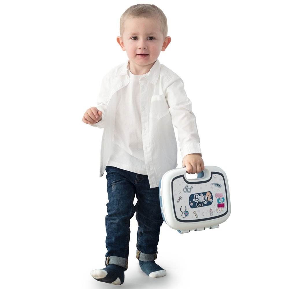 - Cu trusa de doctor micutul dvs. va putea fi pediatru, sa examineze si sa trateze micile dureri ale papusii sale