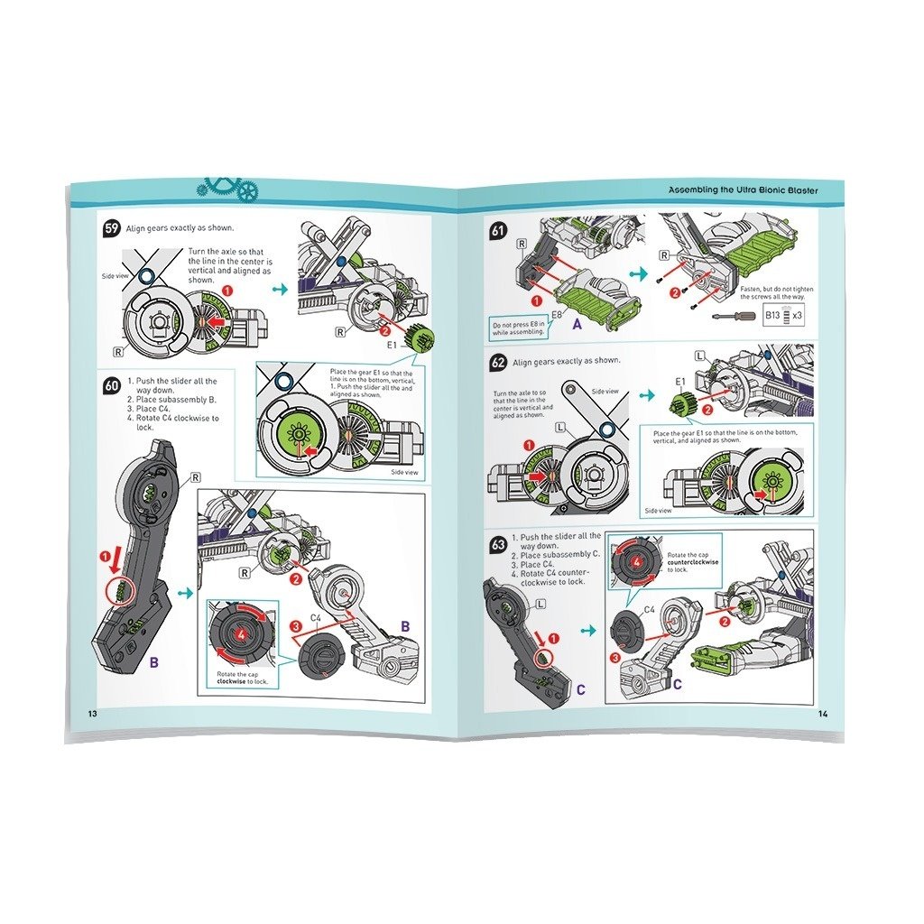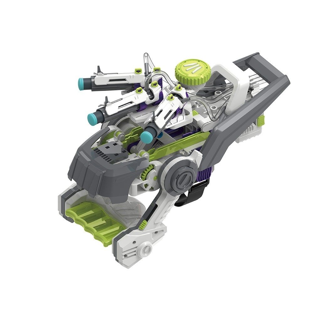 Kit STEM Manusa robotica Proiect de inginerie inedit – construiește o mănușă pneumatică care lansează săgeți din spumă. Invațati despre pneumatică — tehnologii care folosesc aer presurizat — și multe mecanisme interesante în timp ce asamblați blasterul din peste 100 de piese. După ce ați construit și testat blasterul, glisați-l și legați-l de încheietura mâinii. Prima apăsarea trăgaciului se lansează prima săgeată. Apăsați pe trăgaci încă de două ori pentru a lansa următoarele două săgeți. Luați câteva săgeți suplimentare din clema de rezervă de sub încheietura mâinii și reîncărcați. Blasterul este alimentat în întregime de mâna dumneavoastră și de sistemul pneumatic uimitor – nu necesită baterii sau motoare! Rotiți cadranul pentru a roti cele două lansatoare exterioare pentru o răspândire mai largă. Cureaua de prindere a încheieturii este reglabilă. Un manual color, pas cu pas, ghidează asamblarea și utilizarea blasterului și oferă informații științifice fascinante despre sistemele pneumatice și fizica aerului. Compatibil cu multe săgeți standard din spumă. Valoare de joc mare, chiar și după finalizarea construcției inițiale. Conține 139 piese, manual cu instrucțiuni și informații. Vârsta recomandată: +8 ani cu ajutor, +10 ani. AVERTISMENT: Contraindicat copiilor sub 3 ani, conține piese mici, pericol de înghițire. Se recomandă supravegherea copilului de către un adult în timpul jocului. Citiți instrucțiunile înainte de utilizare, urmați-le și păstrați-le pentru referință. Produs in Taiwan de Gigo Toy. Manual Kit STEM Manusa robotica, Gigo Toys – descarca aici fisierul