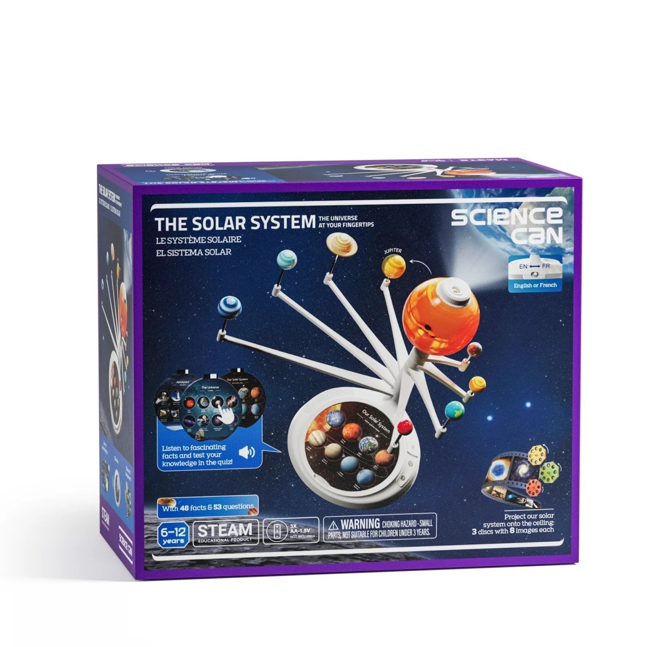 Glob educațional Sistem solar interactiv cu lumini, planete mobile și quiz audio Călătoria spre stele începe în camera copilului! Copiii pot explora sistemul nostru solar într-un mod captivant și educativ – rotind planetele, ascultând fapte audio și răspunzând la întrebări‑quiz. Cu planete mobile, lumină solară, proiecții și funcție audio, copiii învață despre astronomie prin joc. Copiii pot comuta între modul Cunoaștere și modul Întrebări & Răspunsuri pentru a învăța și testa noile informații. Funcția de autocontrol le permite să verifice singuri răspunsurile, iar modul „enciclopedie” oferă explicații audio clare, captivante și ușor de înțeles. Redare vocală diponibilă doar în limbile engleză și franceză. Este prevăzut cu 12 carduri ilustrate (dublă față) , peste 66 de informații educative și un mod chestionar cu 48 de întrebări pentru testarea cunoștințelor. Necesită 3 baterii AA-1.5V (nu sunt incluse). Dimensiune produs: 15,7 × 15,7 × 23,7 cm. Vârsta recomandată: +6 ani. Confecționat din ABS, PC. Conform reglementarilor EN71&ASTM. AVERTISMENT: Contraindicat copiilor sub 3 ani, conține piese mici. Se recomandă supravegherea copilului de către un adult în timpul jocului. Citiți instrucțiunile înainte de utilizare, urmați-le și păstrați-le pentru referință. Produs in China de TopBright Wisdom Information Technology pentru Topbright Gmbh, Germania Manual Kit STEM Glob educational Sistemul Solar, TopBright – descarca aici fisierul