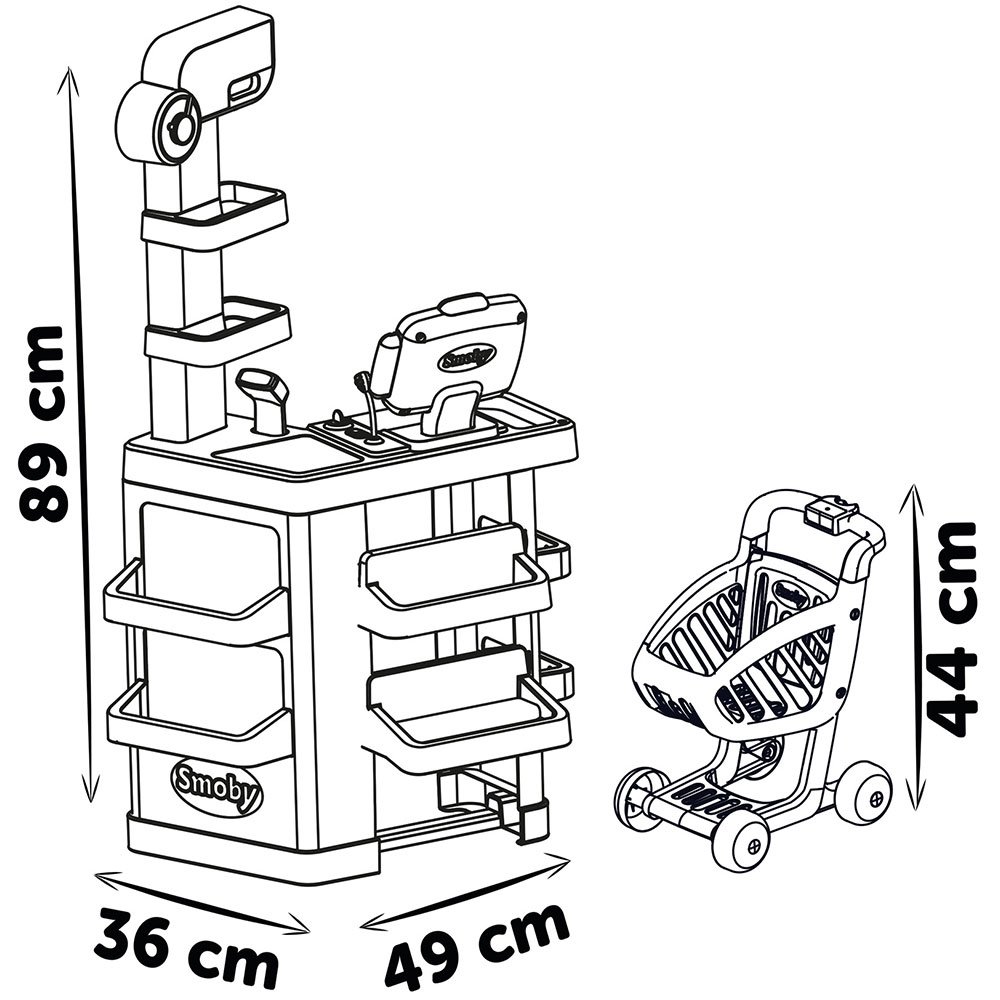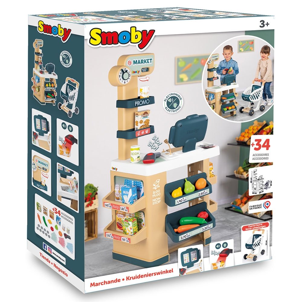 - Supermarketul pentru copii Smoby cu 34 de accesorii este o jucarie interactiva si moderna fabricata de producatorul francez Smoby fiind potrivita incepand cu varsta de 3 ani atat pentru fetite cat si pentru baietei