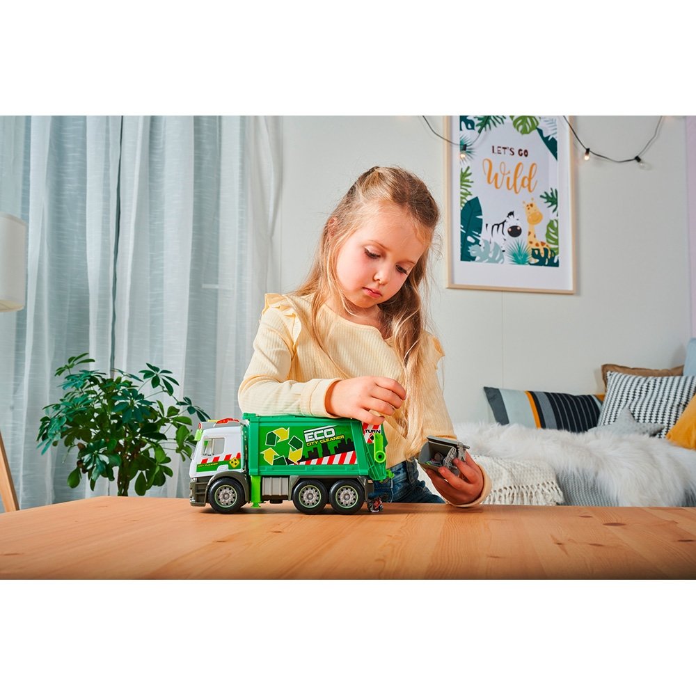 - Imita perfect o masina de gunoi reala, avand toate functiile lor familiare