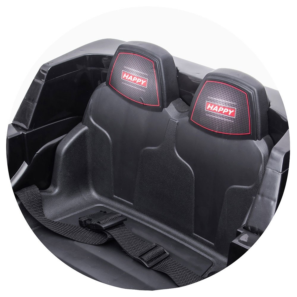 - Bancheta masinutei dispune si de centuri de siguranta oferindu-i celui mic tot confortul de care are nevoie pentru o plimbare in siguranta