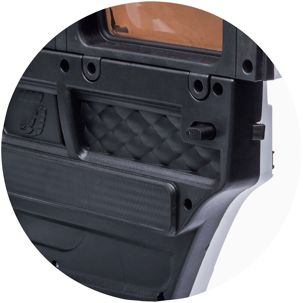 - Bancheta masinutei dispune si de centuri de siguranta oferindu-i celui mic tot confortul de care are nevoie pentru o plimbare in siguranta