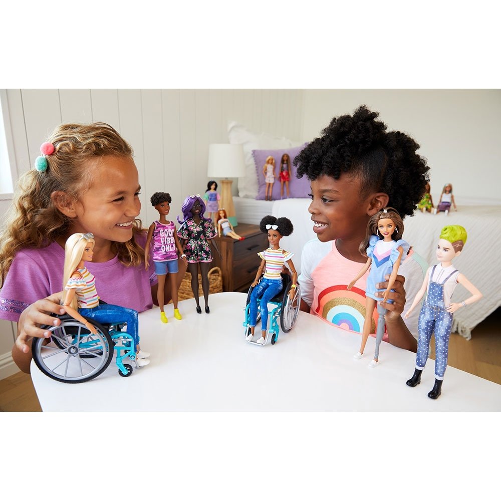 Detalii Papusa Barbie by Mattel Fashionistas papusa in scaun cu rotile si rampa