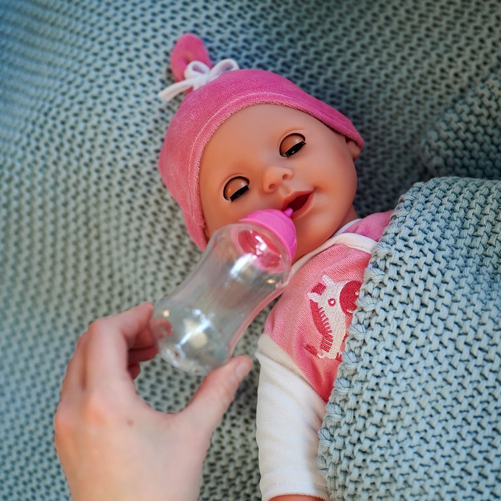 - Setul Laura Babbling contine papusa de corp moale de 38 cm cu suzeta si un biberon