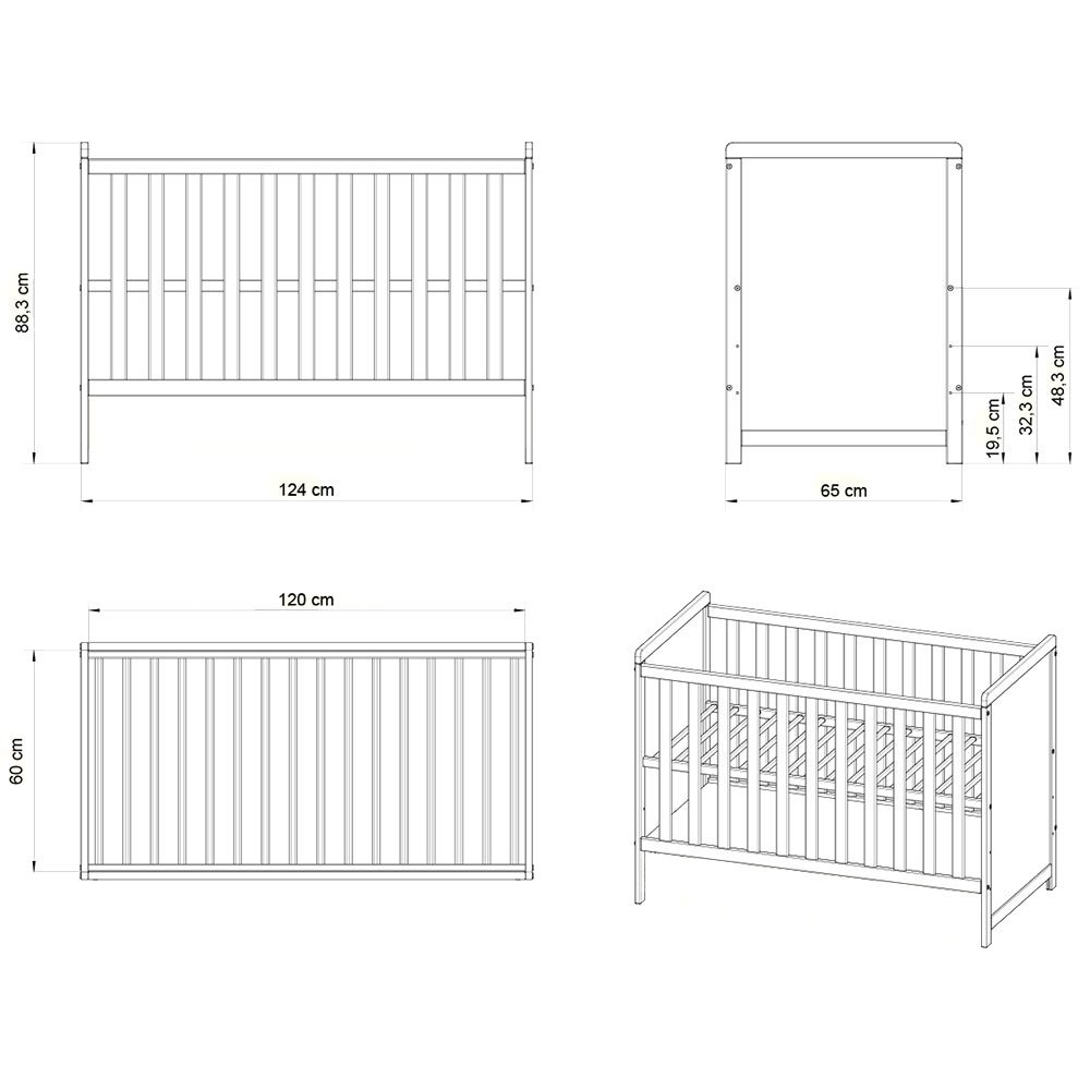 - Pentru ca nevoile celui mic se schimba in decursul celor 3-4 ani in care il va folosi, patutul se adapteaza cu usurinta fiecarei etape astfel 2 bare sunt demontabile din gratiile laterale pentru accesul copilasului mai marisor