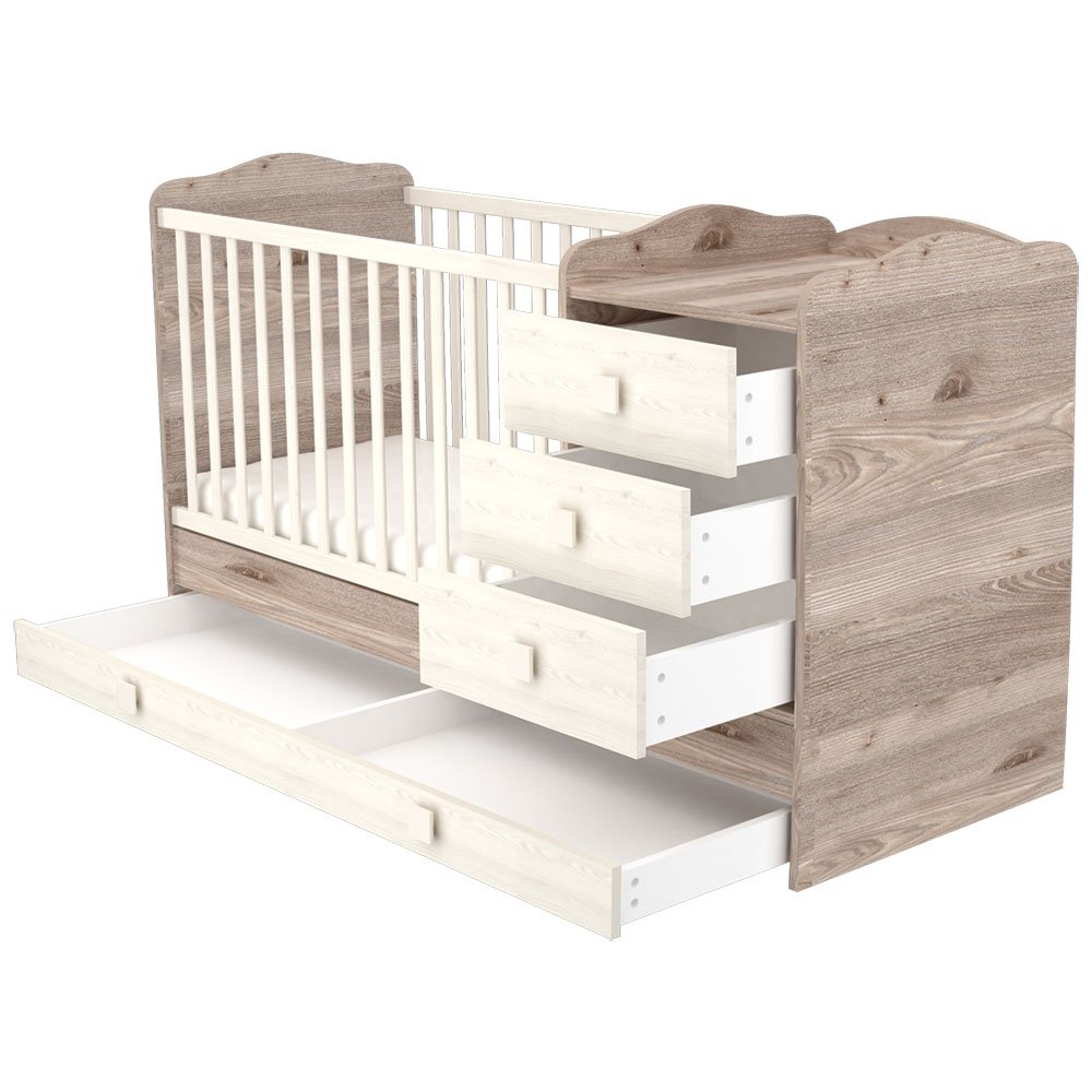 - Dupa indepartarea grilajelor laterale si a comodei de infasat, patul poate fi transformat intr-un pat de tineret si o noptiera