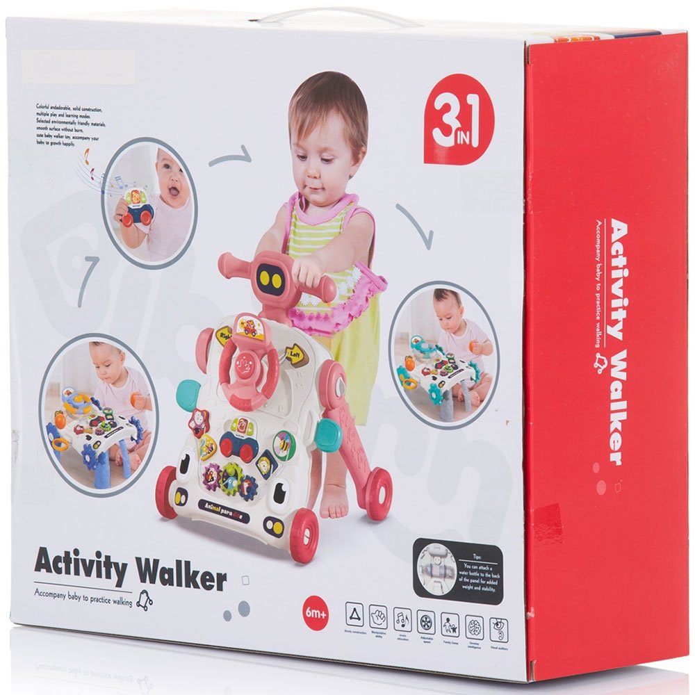• Jucarie multifunctionala 3 in 1: poate fi folosita ca jucarie muzicala, ca premergator si ca masuta de activitati