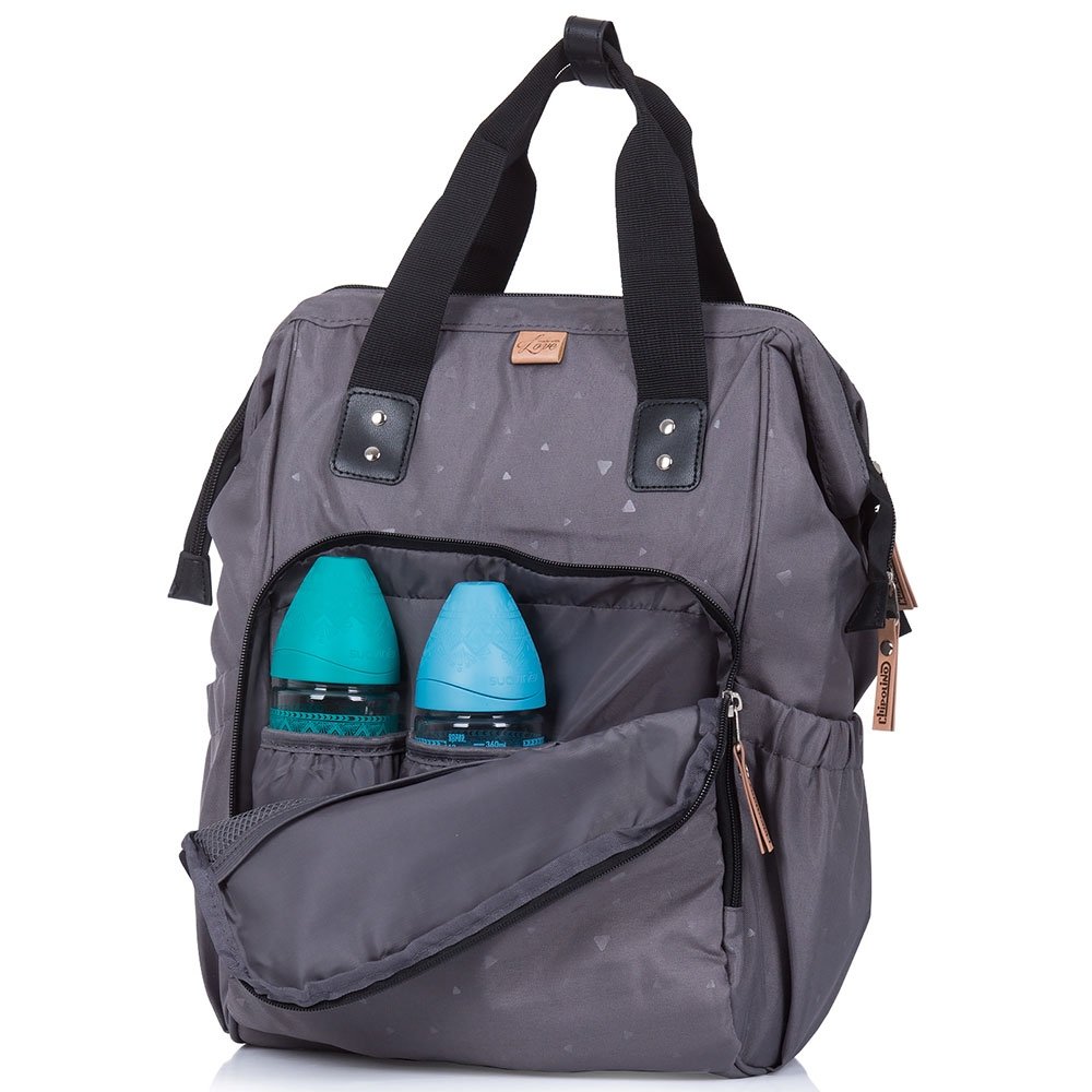 - Doua buzunare laterale si un buzunar frontal (trei buzunare termice in interior, pentru sticle)