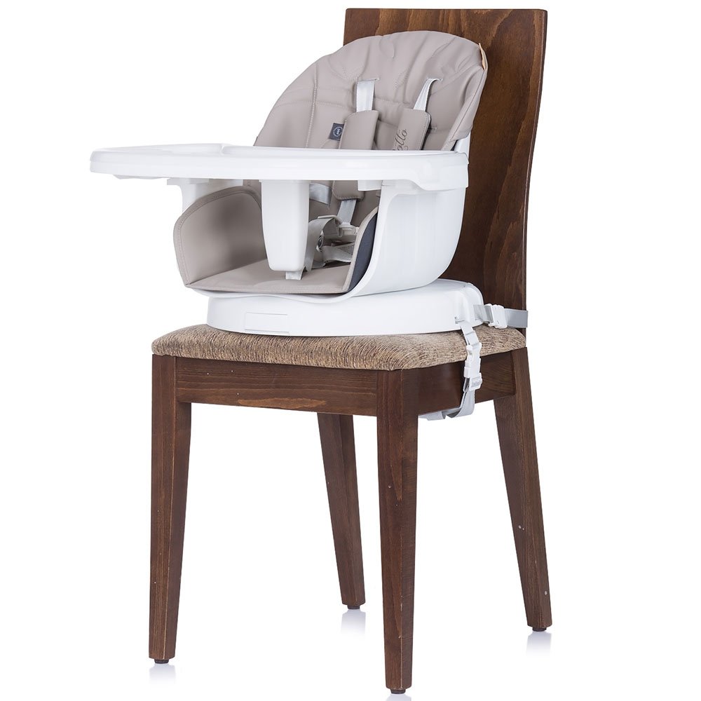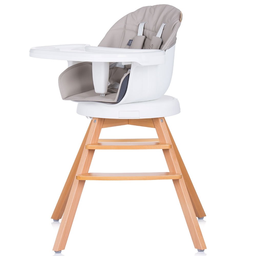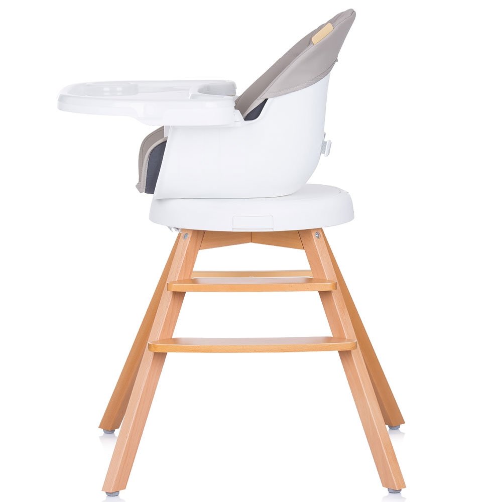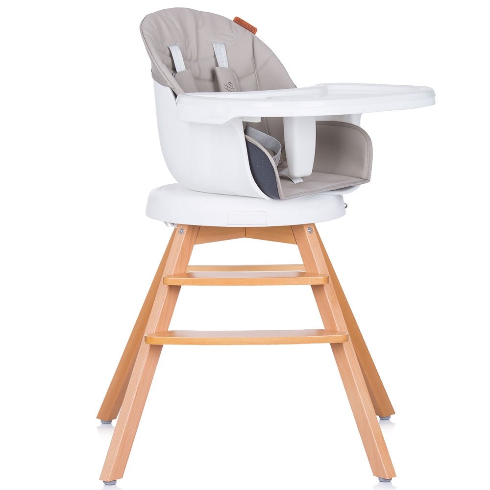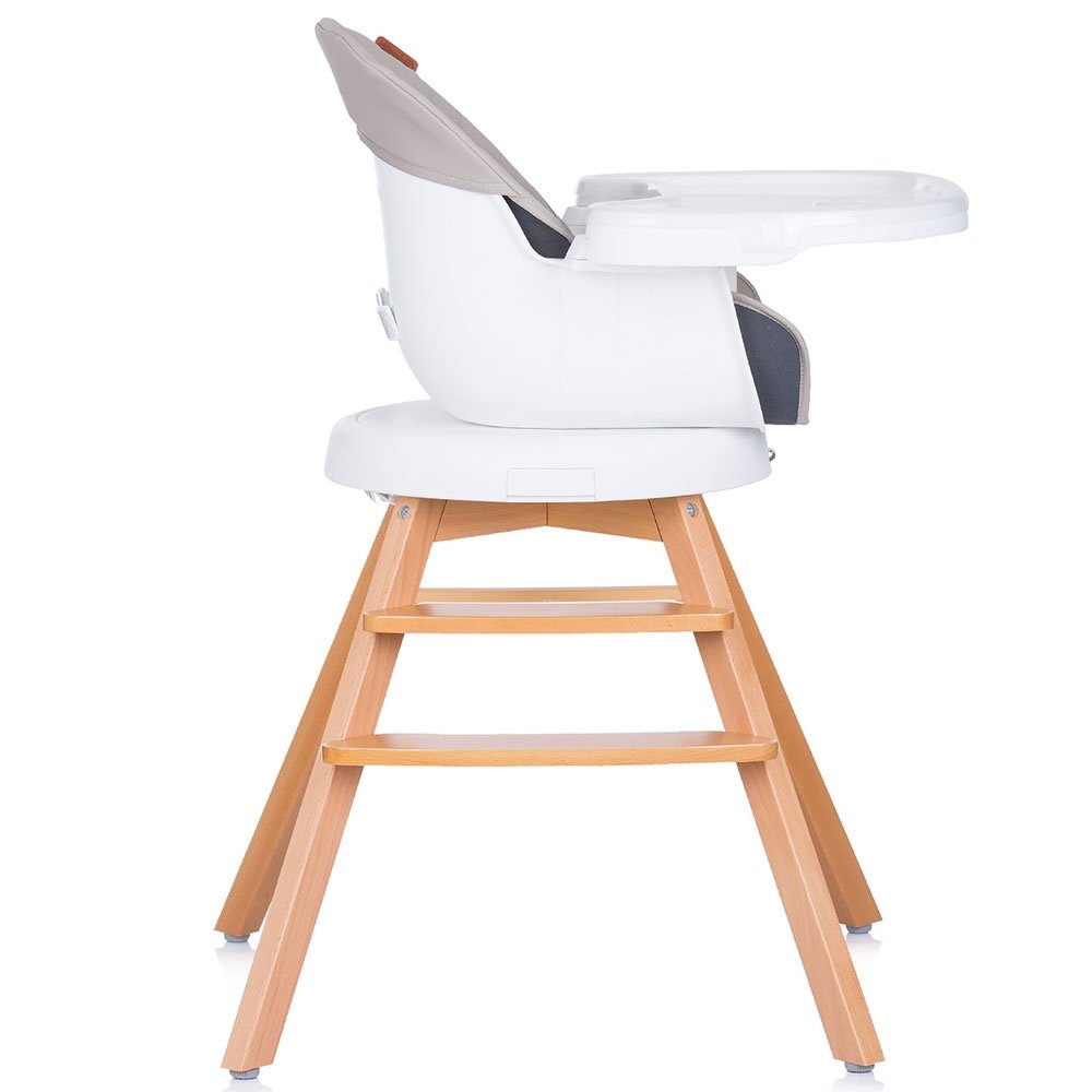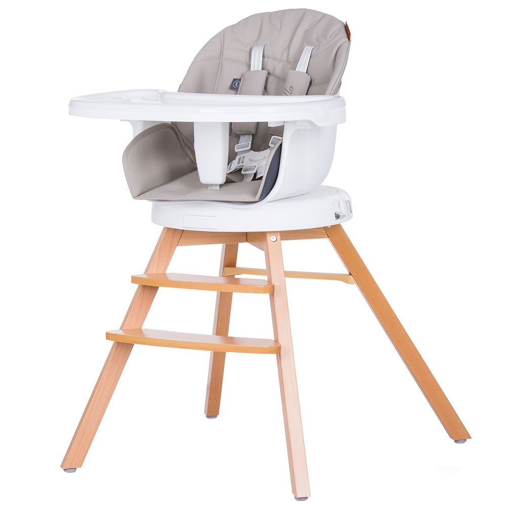 - Poate fi utilizat in 3 moduri: scaun de masa, scaunel prin indepartarea prelungirii picioarelor de lemn sau ca inaltator scaun de masa prin montarea pe un scaun