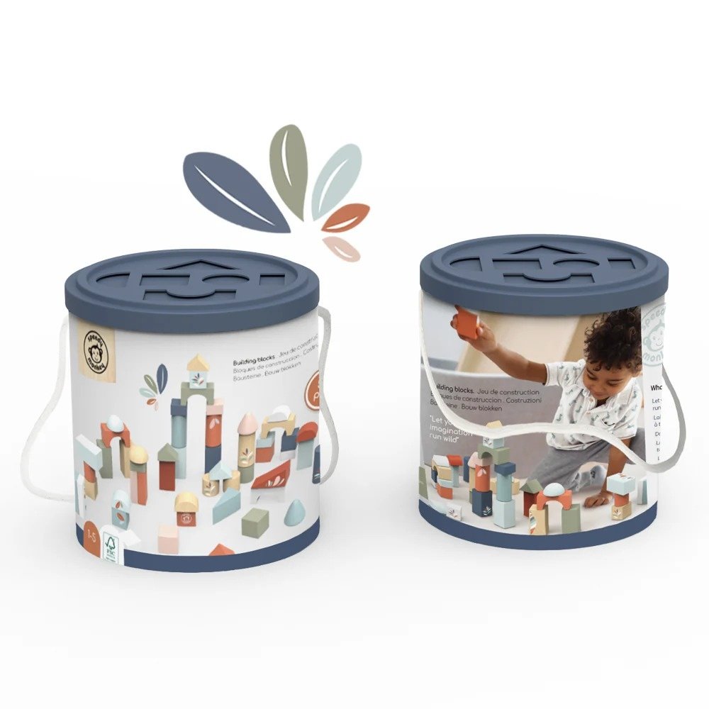 Set cuburi din lemn – Building Blocks 50 piese | Creativitate fără limite! Piese colorate, cu forme și mărimi variate, pentru construcții, învățarea culorilor și dezvoltarea motricității fine – ore întregi de joacă educativă și distractivă, la orice vârstă. Setul include 50 de cuburi imprimate cu motive delicate de frunze. Încurajează creativitatea și jocul de construcție liber. Cuburile sunt ambalate în recipient cilindric cu mâner și capac-sortator de forme, ușor de transportat și distractiv de utilizat la finalul jocului. Caracteristici: Forme geometrice diverse: cuburi, cilindri, prisme, arce și multe altele Culori pastelate și mărimi ușor de apucat de mânuțe mici Pentru construcții creative, sortare, jocuri de echilibru sau învățarea numerelor și culorilor Ambalat într-un recipient practic, cu mâner, pentru depozitare și transport ușor Recomandat pentru: Copii peste 12 luni Joacă liberă și învățare activă acasă sau la grădiniță Cadou educativ, rezistent și plin de culoare pentru orice ocazie Realizat din lemn certificat FSC®, cu culori pe baza de apa. AVERTISMENT: Contraindicat copiilor sub 1 an. Se recomandă supravegherea copilului în timpul jocului. Producător: Speedy Monkey