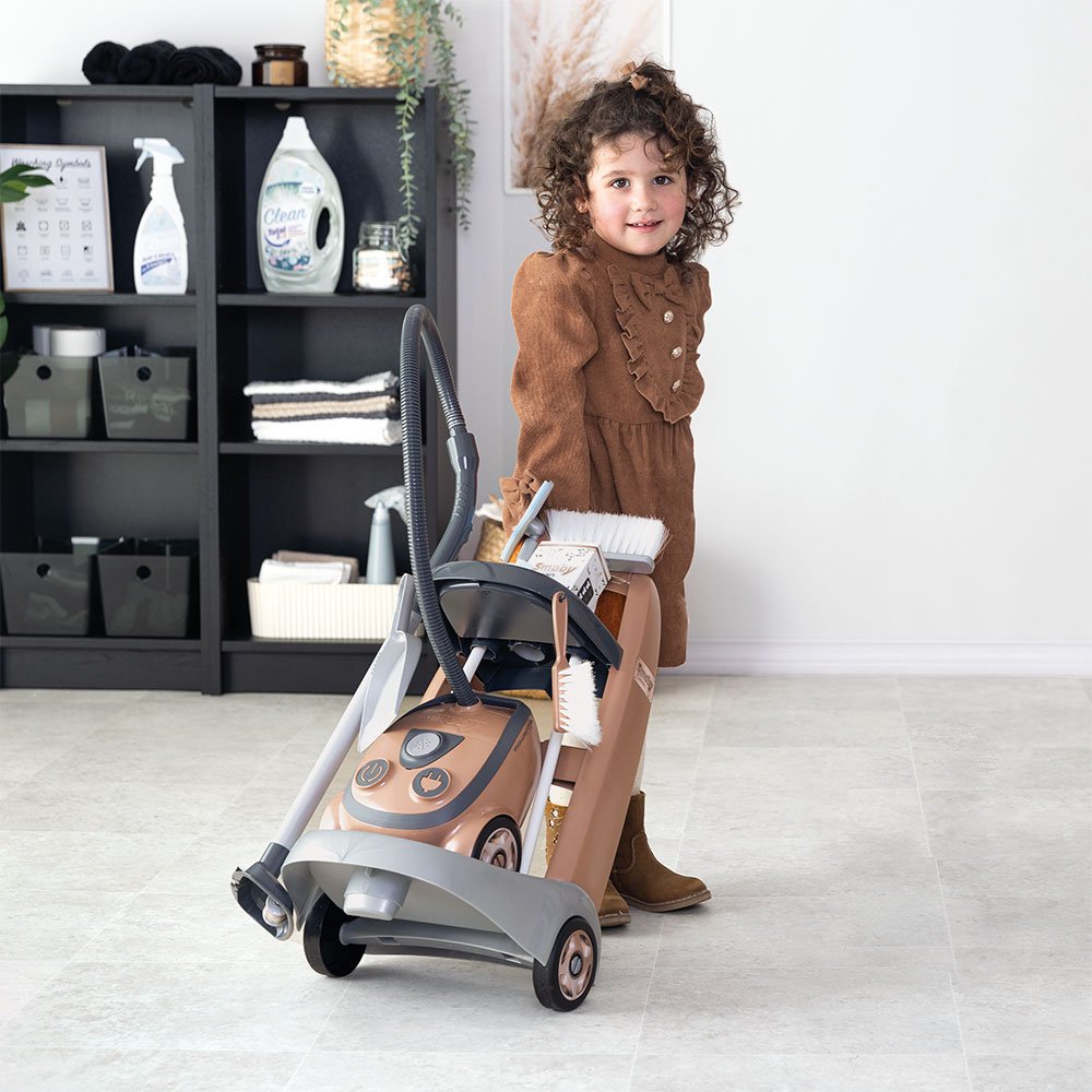 - Setul pentru curatenie cu troller si aspirator electronic Smoby este cadoul ideal pentru copiii care vor sa isi ajute parintii la curatenie