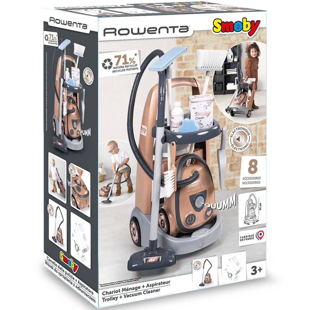Detalii Set curatenie cu troller si aspirator Smoby Rowenta cu 8 accesorii