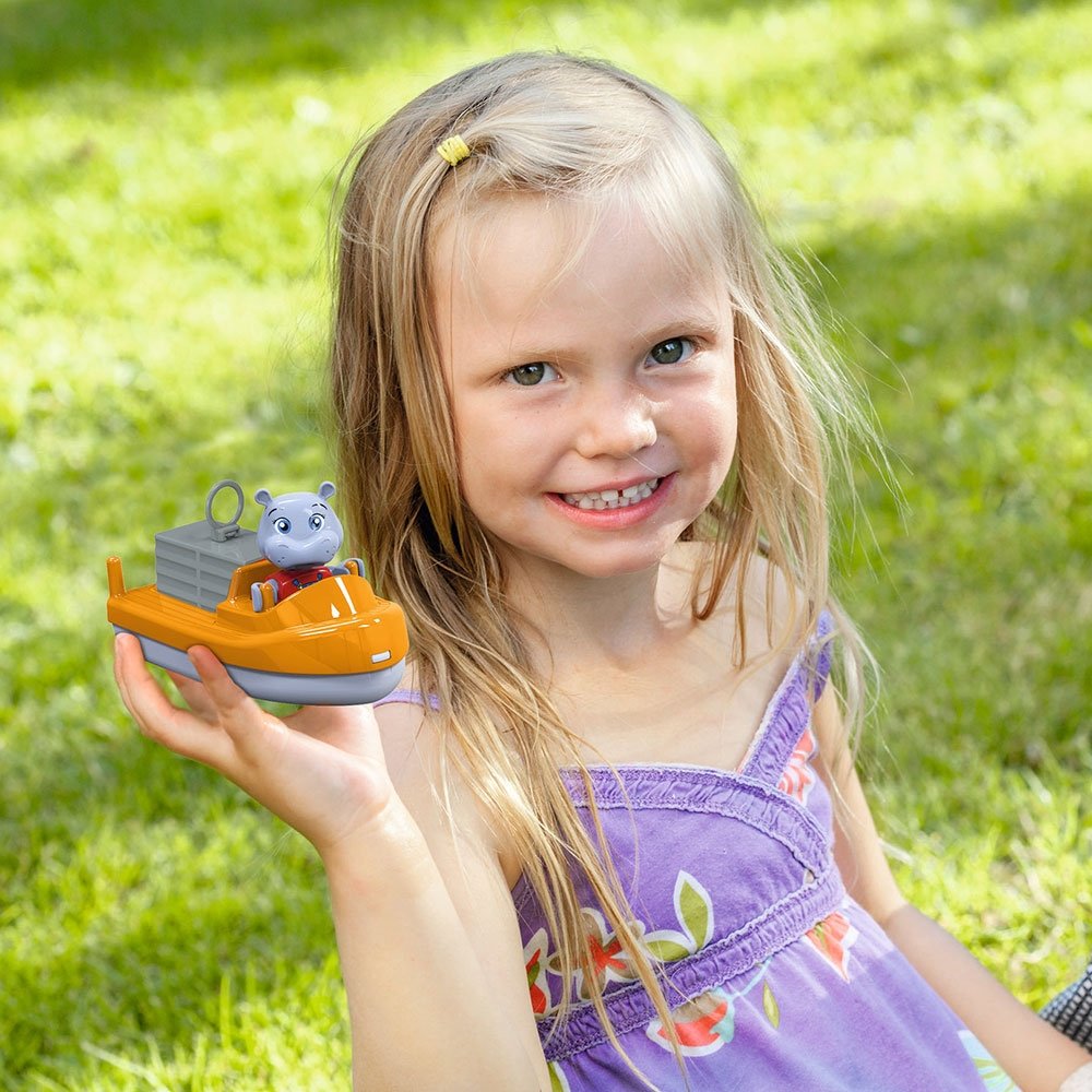 - Setul include intreaga familie de figurine AquaPlay: ursul Capitanul Bo, hipopotamul Wilma, rata Lotta si broasca Nils