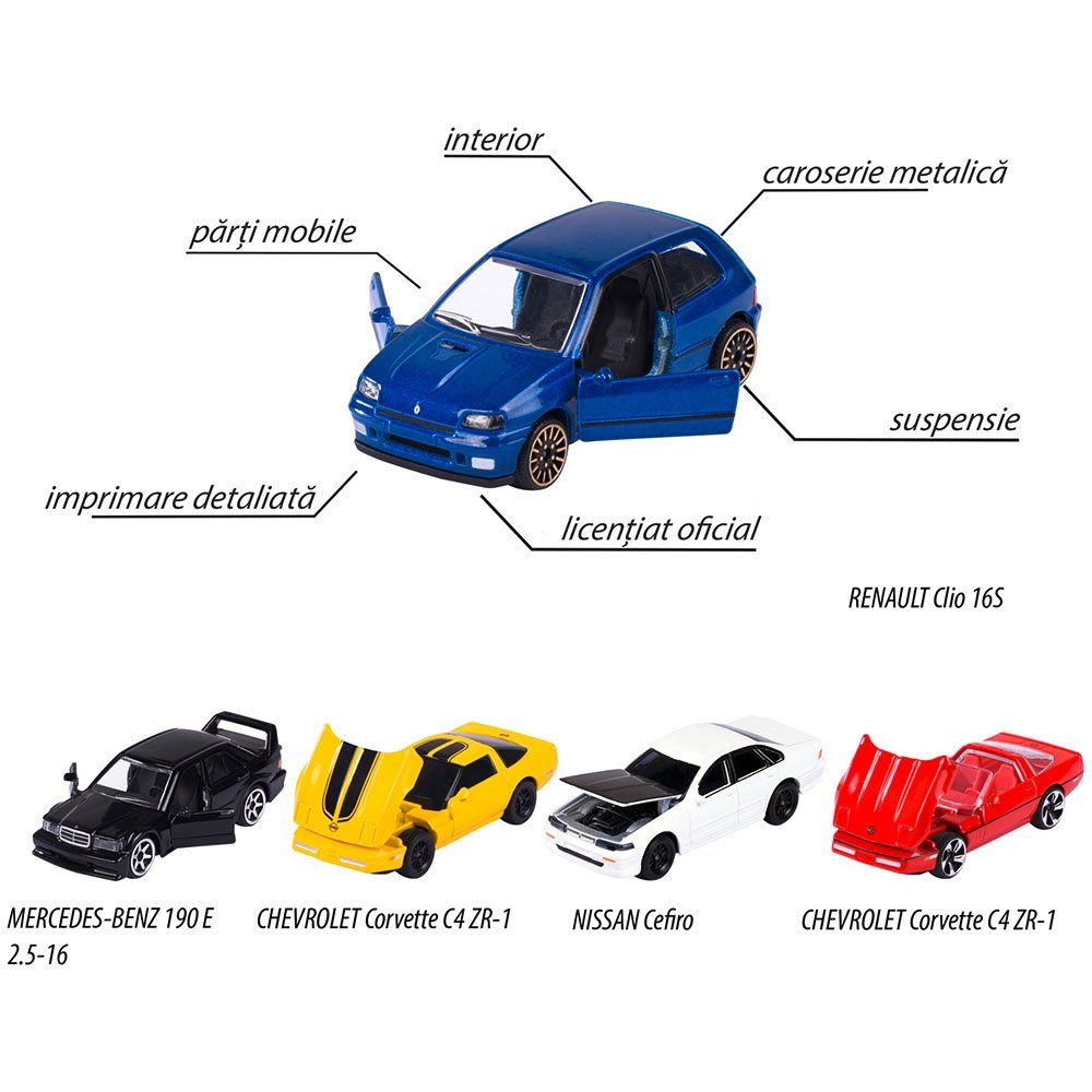 - Jucariile sunt realizate in detaliu, sunt de diferite forme si culori, imitand perfect masinile reale din aceasta gama