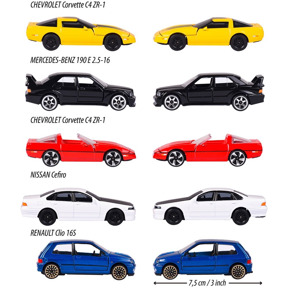 - Setul include 5 masinute din metal, fiecare cu o lungime de 7,5 cm, recomandat copiilor incepand cu varsta de 3 ani