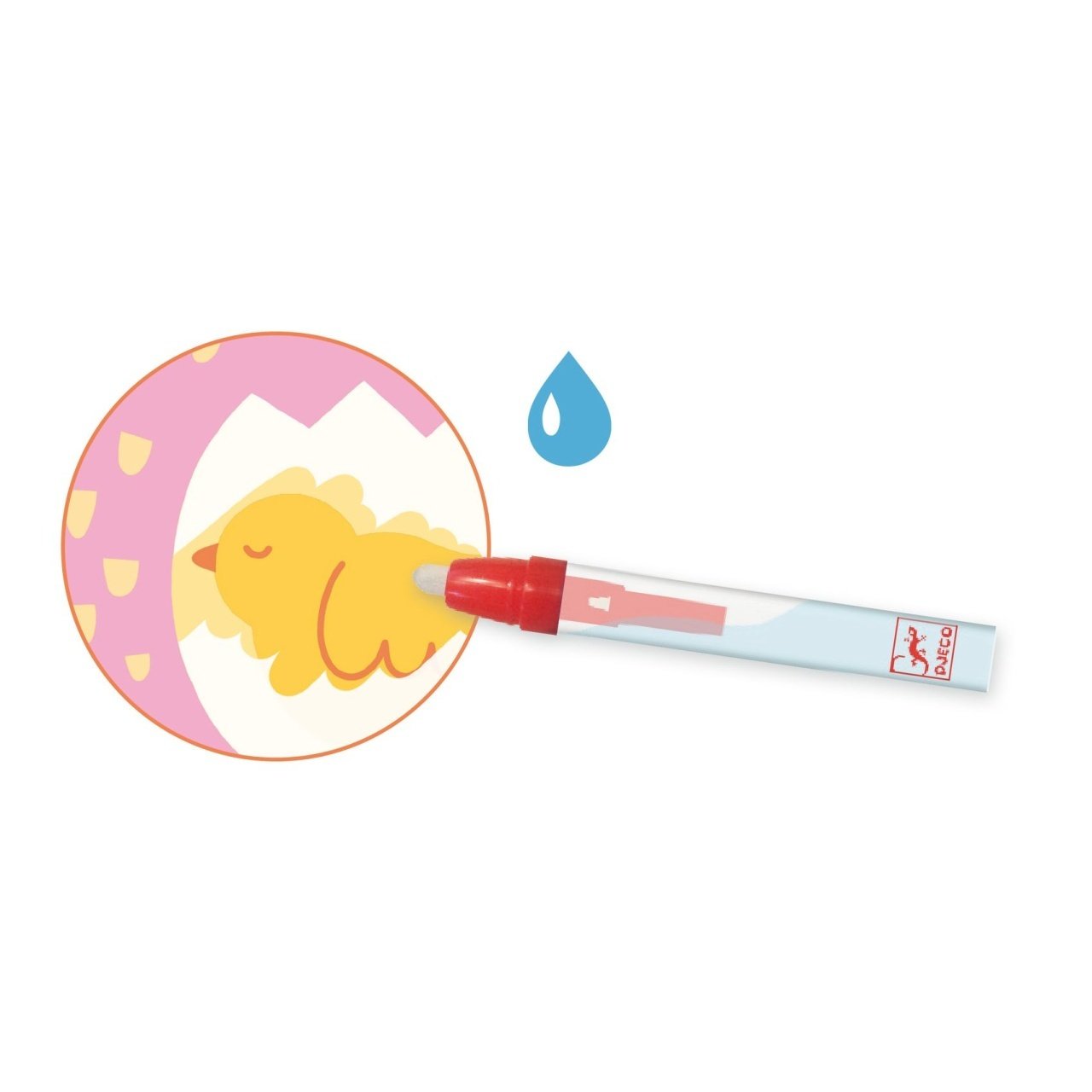 Set pictura cu apa Animale din gradina Acest set de colorat cu apă pentru copii de la 18 luni este o activitate creativă pentru a-i introduce pe cei mici ]n lumea culorilor. Copilul folosește markerul umplut cu apă pentru a colora zonele albe de pe planșe, iar ca prin magie apar ilustrații cu animale pui. Efectul este fascinant pentru copii: pe măsură ce apa atinge suprafața planșei, imaginile ascunse devin vizibile. După ce planșele se usucă, desenul dispare, iar activitatea poate fi reluată de nenumărate ori , oferind distracție fără murdărie sau pete de culoare. Setul conține: 4 planșe ilustrate din plastic moale, elastic, reutilizabile, cu un strat special care dezvăluie imaginea la contactul cu apa, marker cu rezervor pentru apă, potrivit pentru mânuțe mici si o bază rigidă din carton gros pentru planșe. Dimensiune produs: 19.5 × 19.5 cm Vârsta recomandată: +18 luni. Confecționat din plastic moale + carton FSC®. Conform reglementărilor EN71&ASTM. AVERTISMENT: Contraindicat copiilor sub 18 luni. Se recomandă supravegherea copilului de către un adult în timpul jocului. Citiți cu atenție eticheta produsului înainte de a înmâna jucăria copilului. Producător: Djeco, Franța