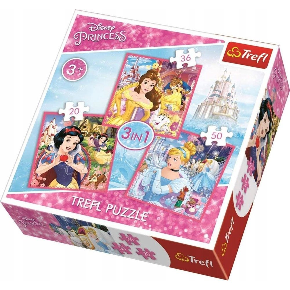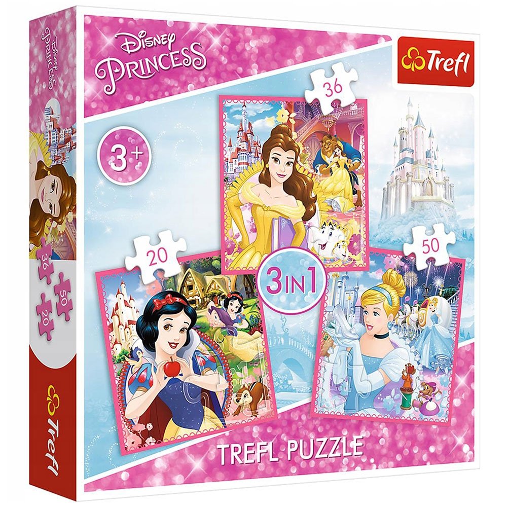 Detalii Set puzzle 3 in 1 Trefl Disney Princess, Lumea fermecata a printeselor, 1×20 piese, 1×36 piese, 1×50 piese