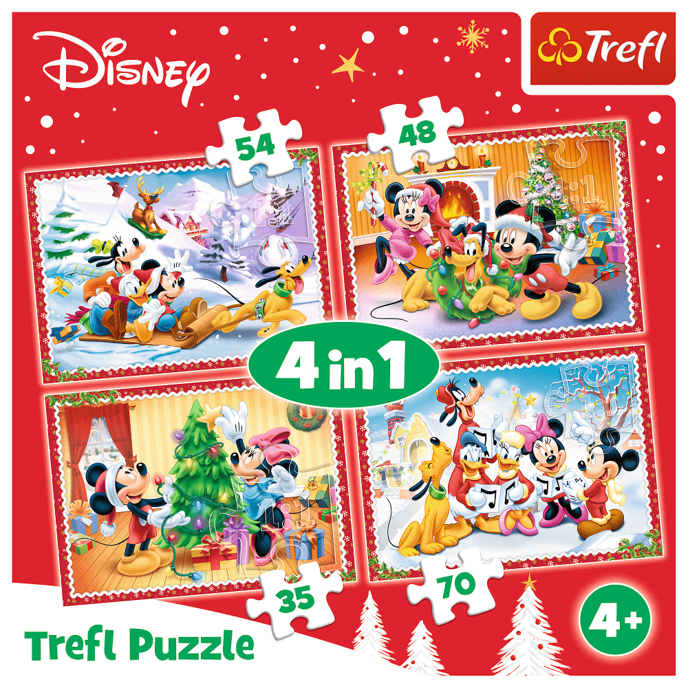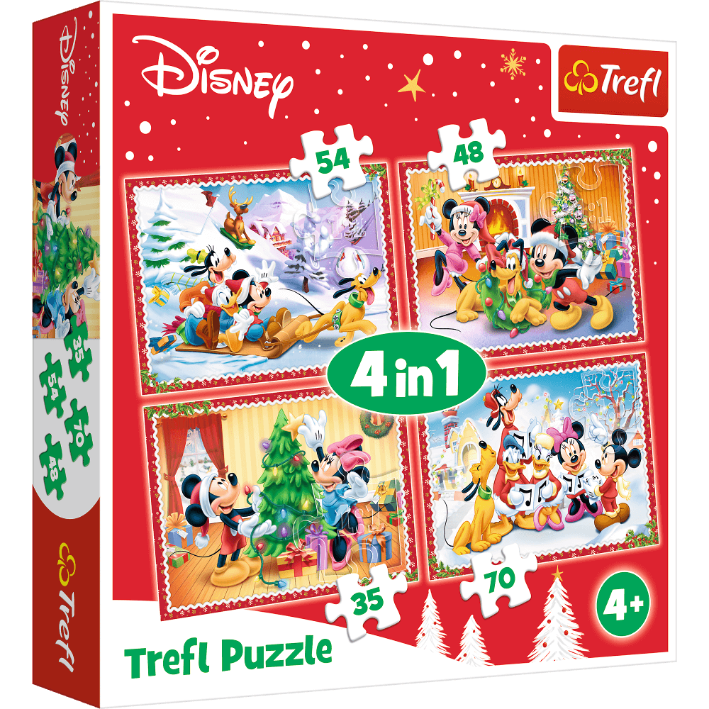 Detalii Set puzzle 4 in 1 Trefl Disney, Sarbatoarea Craciunului, 1×35 piese, 1×48 piese, 1×54 piese, 1×70 piese