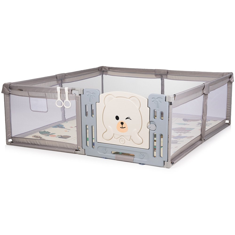 - Cu dimensiunile sale generoase de 200×180 cm, acest tarc modern creeaza un spatiu confortabil si sigur pentru joaca, odihna si descoperire